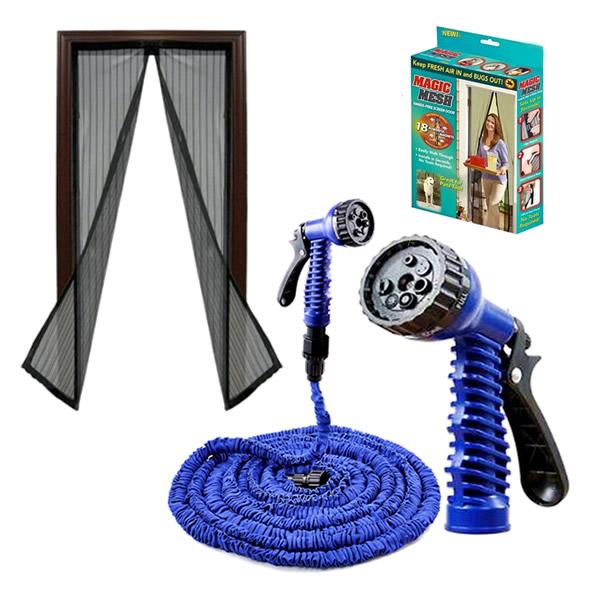 Furtun extensibil Magic Hose + Perdea magnetica antiinsecte Magic Mesh este un nou tip de perdea care va permite sa va bucurati de aerul proaspat si curat de afara, fara a fi deranjat de insecte. Perdeaua Magic Mesh se deschide foarte usor si datorita magnetilor cu care este prevazuta, se inchide singura. este perfecta pentru orice fel de usi (simple, glisante si chiar si pentru cele de la rulota) foarte usor de montat si dezinstalat se depoziteaza foarte usor dupa spalare poate fi reutilizata fara probleme se deschide foarte usor, si datorita magnetilor cu care este prevazuta se inchide singura cu Magic Mesh nu mai riscati ca vreun membru al familiei dumneavoastra sa uite usa deschisa animalele dumneavoastra de companie vor fi incantate, intrucat vor putea intra in casa foarte simplu si usor dimensiune 210 x 100 cm Magic Hose este extensibil si dispune de pistol pentru ca acest produs. Furtunul extensibil Magic Hose isi mareste de pana la 3 ori lunginea atunci cand este utilizat sub presiunea apei. Acum puteti uda gradina, spala masina sau spala covoare simplu si usor cu ajutorul furtunului special. se intinde automat de 3 ori se micsoreaza rapid incredibil de usor simplu de folosit rapid compact tesatura dura rezistent nu se rasuceste pulverizare puternica compact si eficient