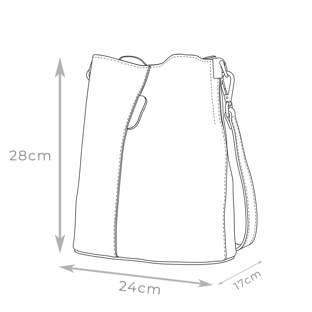 Geanta din piele naturala Milena grena este un accesoriu elegant si versatil, ideal pentru un stil modern, discret. Realizata din piele intoarsa, cu un aspect deosebit de elegant, geanta impresioneaza prin textura fina si finisajele impecabile. Forma sa tip „bucket bag” ofera un spatiu generos pentru obiectele esentiale de zi cu zi, in timp ce sistemul de inchidere sigur si cureaua de umar reglabila asigura confort si functionalitate. MATERIAL: piele naturala DIMENSIUNI (inaltime x lungime x latime): 28x24x17cm COMPARTIMENTE: doua compartimente separate de un buzunar cu fermoar BUZUNARE: fara buzunare SISTEM DE PRINDERE: bretea de umar detasabila scurta (53 cm) + bretea de umar detasabila, reglabila (50-123cm) CULOARE ACCESORII: auriu