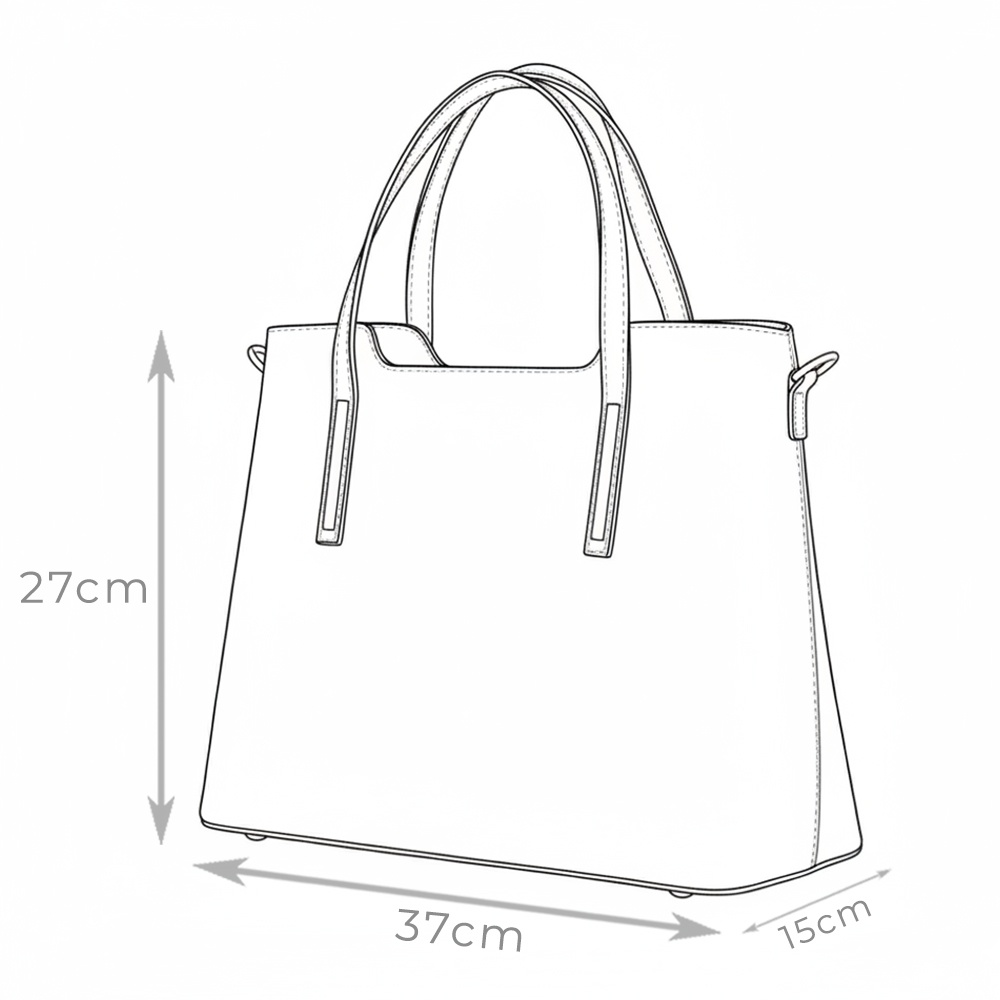 Geanta din piele naturala Ligia grena este un model cu design minimalist, realizat din piele rigida, neteda si placuta la atingere. Este un model cu dimensiuni generoase (a nu se confunda cu acelasi model, dimensiunea mica!), prevazut cu doua compartimente separate de un buzunar cu fermoar. O poti asorta cu succes la tinute office sau casual. MATERIAL: piele naturala DIMENSIUNI (inaltime x lungime x latime la baza): 27 x 37 x 15cm INALTIME MANERE: 21cm - permit purtarea pe brat sau pe umar COMPARTIMENTE: doua compartimente separate de un buzunar cu fermoar BUZUNARE: buzunar interior cu fermoar; buzunare interioare fara fermoar SISTEM DE PRINDERE: doua manere + bretea de umar detasabila CULOARE ACCESORII: argintiu