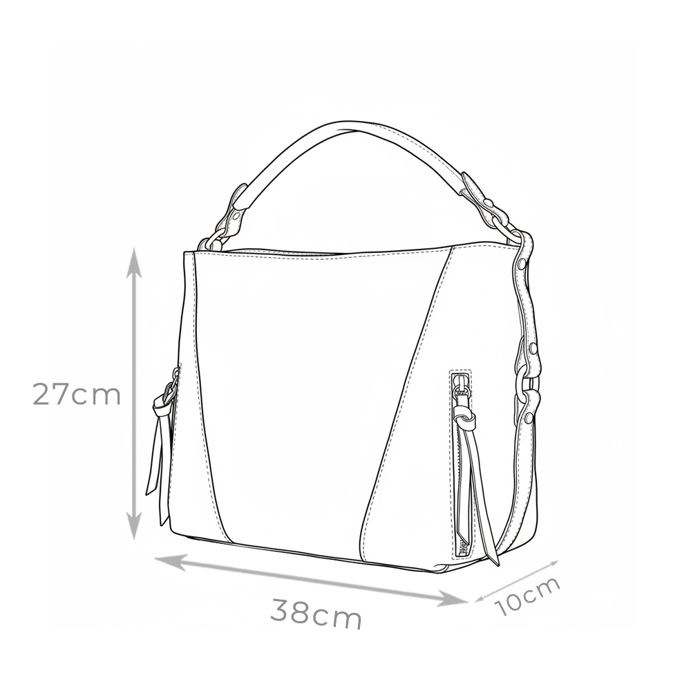 Geanta din piele Samira maro este accesoriul perfect, usor de asortat, pentru femeile care isi doresc sa combine stilul sofisticat cu functionalitatea. Realizata din piele naturala de inalta calitate, geanta se remarca prin textura sa usor mata, care ofera un aspect rafinat si rezistent, ideal pentru uzul zilnic. Designul este unul clasic si versatil, cu linii moi si o forma generoasa care se muleaza elegant pe corp. Datorita dimensiunii sale medii, geanta este spatioasa, permitandu-ti sa ai la indemana toate lucrurile esentiale, fie ca mergi la birou sau la o intalnire in oras. Interiorul este impartit in doua de un buzunar mare cu fermoar, iar buzunarele dedicate pentru telefon, acte si alte accesorii de mici dimensiuni fac organizarea sa fie simpla si eficienta. Geanta poate fi purtata atat pe umar, cat si in mana, oferindu-ti flexibilitate in functie de stilul tau de zi cu zi. MATERIAL: piele naturalaDIMENSIUNI (inaltime x lungime x latime): 27x38x10cmDIMENSIUNI MANER: inaltime: 16cm; lungime: 58cmCOMPARTIMENTE: doua compartimente separate de un buzunar mare, cu fermoarBUZUNARE: buzunar interior cu fermoar; buzunar interior fara fermoar; buzunare laterale cu fermoarSISTEM DE PRINDERE: maner ce permite purtarea pe umar sau pe brat + bretea de umar detasabila, reglabila, 60-115cmCULOARE ACCESORII: argintiu