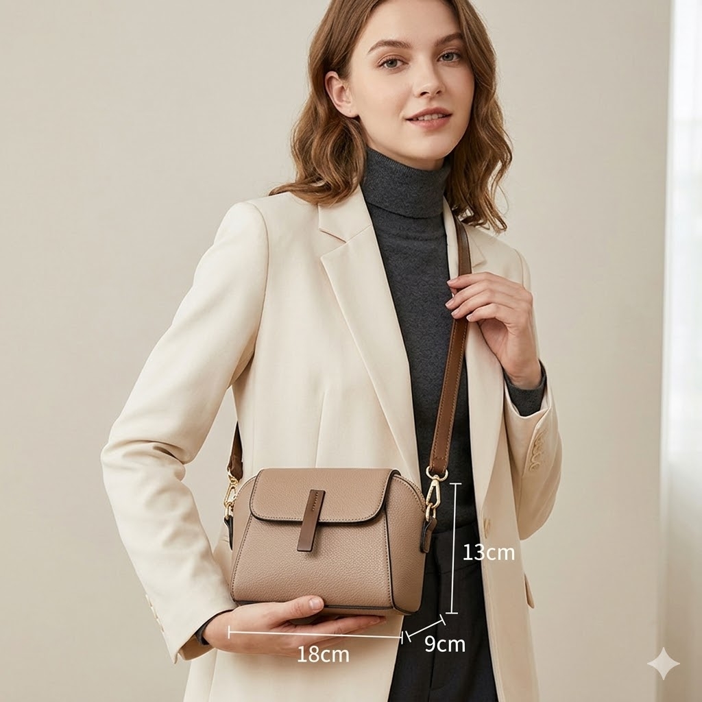 interior captusit; 1 compartiment principal; 1 buzunar interior cu fermoar; 1 buzunar interior fara inchidere; bareta ajustabila si detasabila, material: piele ecologica; sistem inchidere: fermoar si capac; dimensiuni: 18 x 9 x 13 cm. Important : Culoarea produsului poate varia ușor datorită luminozității monitorului. Din cauza varietății instrumentelor de măsură, pot exista ușoare erori de cm.