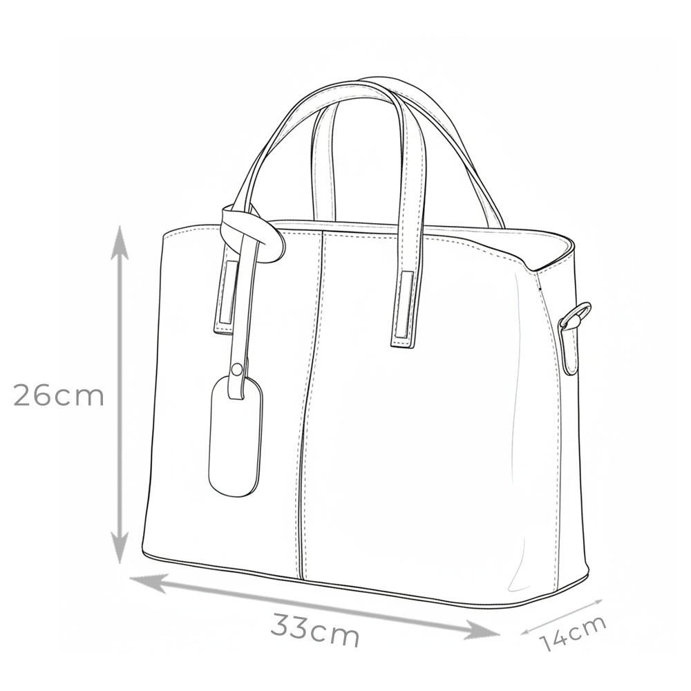 Ajunsa pe raftul myOwn direct de la cunoscutii designeri italieni de la Florenta, geanta din piele naturala Ella neagra este un model cu un impact vizual deosebit, fiind realizata in linii simple, cu un design elementar, completat de manerele de culoare inchisa ce realizeaza un puternic contrast cu materialul gentii. Este realizata din piele naturala amprentata cu modelul pielii de crocodil. Interiorul este impartit in doua compartimente de un buzunar mare, cu fermoar, iar buzunarele asigura organizarea optima a obiectelor mici. Este un model ce te va face sa te simti speciala si va intoarce privirile la orice aparitie! MATERIAL: piele naturala DIMENSIUNI (inaltime x lungime x latime): 26x33x14cm DIMENSIUNI MANERE: inaltime: 11cm COMPARTIMENTE: doua compartimente separate de un buzunar mare, cu fermoar BUZUNARE: buzunar interior cu fermoar; buzunar interior fara fermoar SISTEM DE PRINDERE: doua manere + bretea de umar detasabila, reglabila (60-110cm) CULOARE ACCESORII: argintiu ALTELE: picioruse metalice pe partea de jos
