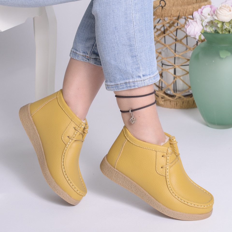 ✅ Culoare: Mustar ✅ Material: piele naturala ✅Material interior: Imblanit ✅ Inaltime talpa: 3 cm ✅ Stil: casual