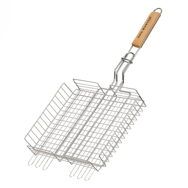 Grill pliabil pentru gratar 30x25x5 cm, BBQ Grill Square Gratar de gratar cu panglica densa ideal pentru bucati mici de carne sau legume fara teama de a cadea. Are un maner de 29 cm cu lambriuri din lemn. Material: Chrome. Lungime x Latime 30x25x5 cm.