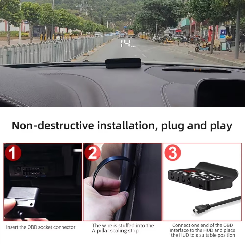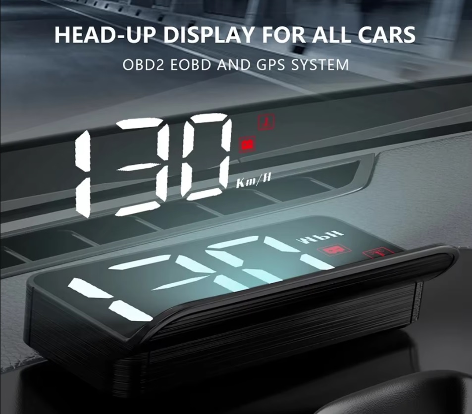 Head Up Display cu proiectie pe parbriz Compatibilitate cu OBD 2/OBDII, Alarma Automata Afisajul auto Head Up proiecteaza date pe parbriz, precum: viteza, RPM, temperatura apei, tensiunea kilometrajului unic. Astfel, soferii pot avea acces mai usor la aceste informatii. Specificatii: Compatibil cu vehiculele cu interfata OBD2 si EOBD Sa fie produse dupa 2003 in Europa si dupa 2007 in alte regiuni. Motor RPM; Iluminare decorativa ambientala; Motor RPM; Alarma cod de eroare; Alarma de conducere la oboseala; Pictograma alarma; Senzor de lumina: HUD poate regla automat luminozitatea in functie de mediu; Unitate de masura pentru viteza: KM / H, MPH; Afisaj: Viteza, temperatura apei, tensiunea bateriei, distanta de conducere; Pictograma temperaturii apei; Pictograma tensiunii bateriei; Temperatura de lucru: – 40 ° C— +120 ° C; Presa barometrica: 86-106KPa; Umiditate relativa: 10% -95 %. Pachetul contine: 1 x Display (ecran) pentru parbriz; 1 x Cablu conexiune; 1 x Folie adeziva; 1 x Manual de instructiuni.