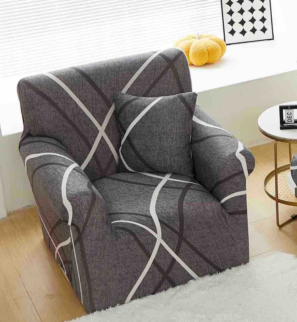 Husa Elastica Pentru fotoliu cu brate, Jojo Home, Gri, Dungi