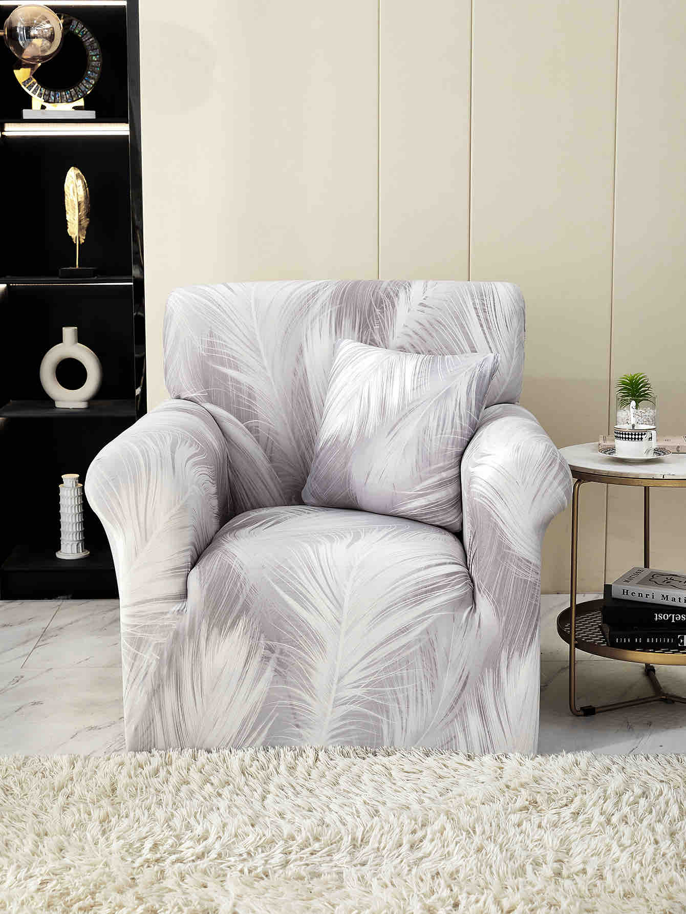 Husa Elastica Pentru fotoliu cu brate, Jojo Home, Gri, pene