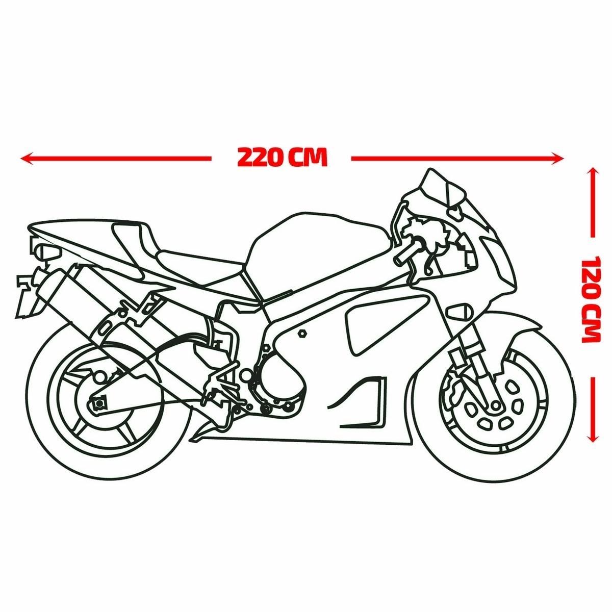 Husa exterioara motocicleta, 210 cm x 120 cm Husa exterioara pentru motocicleta este special conceputa pentru a proteja motocicletele de conditii meteorologice extreme (furtuna, vant, grindina, zapada, gheata, ploaie etc), dar si de murdarie (praf, excremente de pasari etc). Rezistenta la actiunile razelor soarelui, ultraviolete. Lavabila, usor de curatat si de depozitat. Specificatii Tehnice: Tip ambalaj: punga plastic Dimensiuni: 210 cm x 120 cm Material: 100% Polietilena Marime: Medie