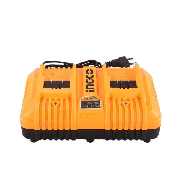 GASESTI AICI ACUMULATORII SAU INCARCATORUL POTRIVIT PENTRU ACEASTA GENERATIE DE UNELTE . Acest produs face parte din renumita familie de produse P20S , care include peste 125 de unelte compatibile cu acelasi tip de acumulator . Indiferent daca esti amator sau profesionist, poti achizitiona acumulatorul o singura data si ulterior ai libertatea de a alege dintr-o gama larga de unelte utile. O solutie inteligenta, convenabila si eficienta pentru orice proiect! Formidabil , nu-i asa? Alege din peste 125 unelte compatibilite. CLICK AICI. Incarcator Dublu 20V 4Ah P20S Ingco FCLI2034E Incarcatorul dublu Ingco FCLI2034E este proiectat pentru a incarca rapid si eficient doua baterii de 20V simultan, oferind o solutie convenabila pentru utilizatorii de scule electrice din gama P20S . Specificatii Tehnice: Tensiune de intrare: 110V-240V Tensiune de iesire: 2 x 20V Caracteristici: Incarcare simultana: Permite incarcarea a doua baterii de 20V in acelasi timp, economisind timp si crescand eficienta muncii. Compatibilitate larga: Proiectat pentru a functiona cu toate bateriile din seria P20S de la Ingco. Usor de utilizat: Design compact si usor de transportat, ideal pentru utilizare in diverse medii de lucru. Incarcatorul dublu Ingco FCLI2034E este esential pentru profesionistii care folosesc multiple unelte electrice in acelasi timp, oferind o incarcare rapida si simultana pentru a mentine toate uneltele pregatite de utilizare.