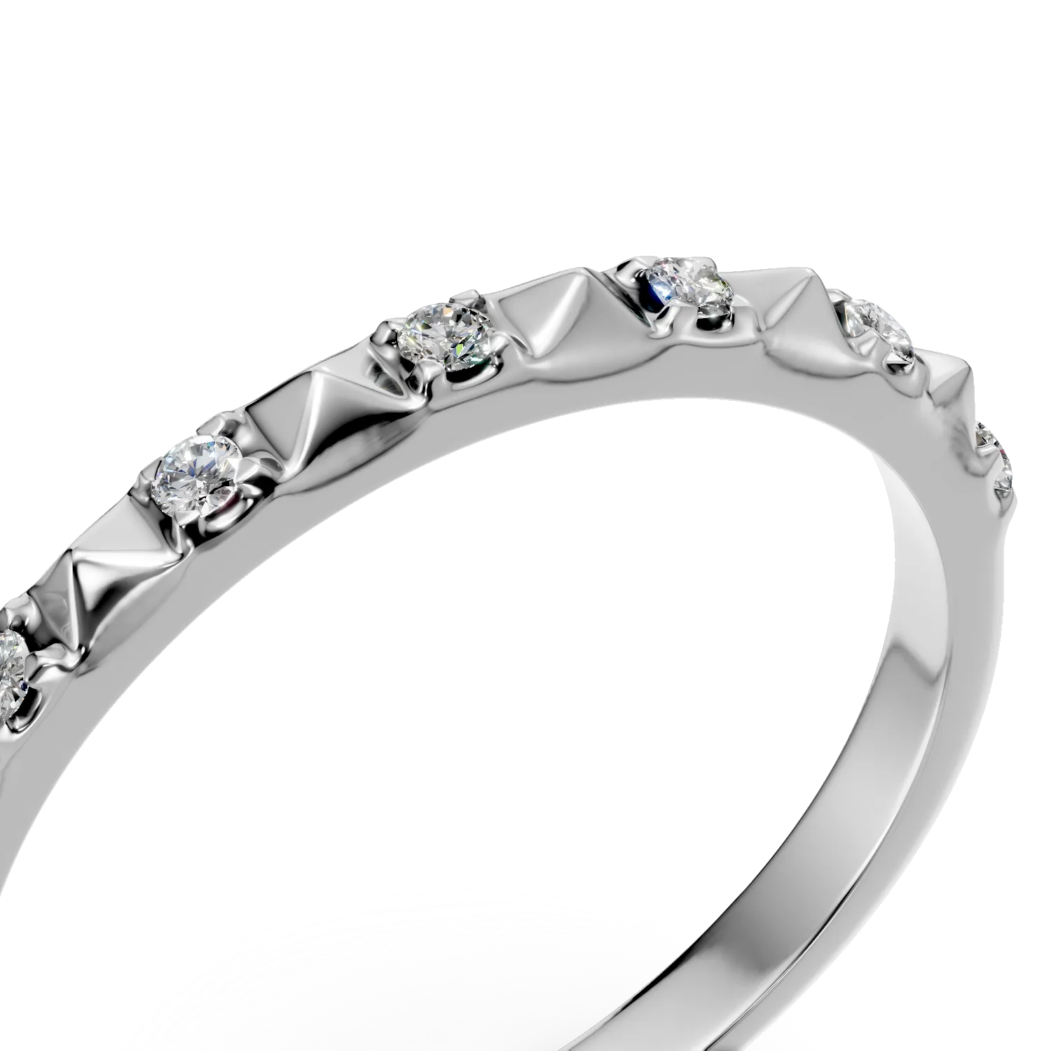 Eleganta si rafinament. Acest inel din aur alb cu diamante microsetting de 0.06ct imbina formele moderne cu un stil clasic, aducand un plus de stralucire fiecarei tinute. Creat cu atentie la detalii, bijuteria reflecta personalitatea ta unica si emana incredere. Paseste in universul TEILOR, un spatiu dedicat celor care apreciaza frumosul si isi doresc sa straluceasca in fiecare moment.
