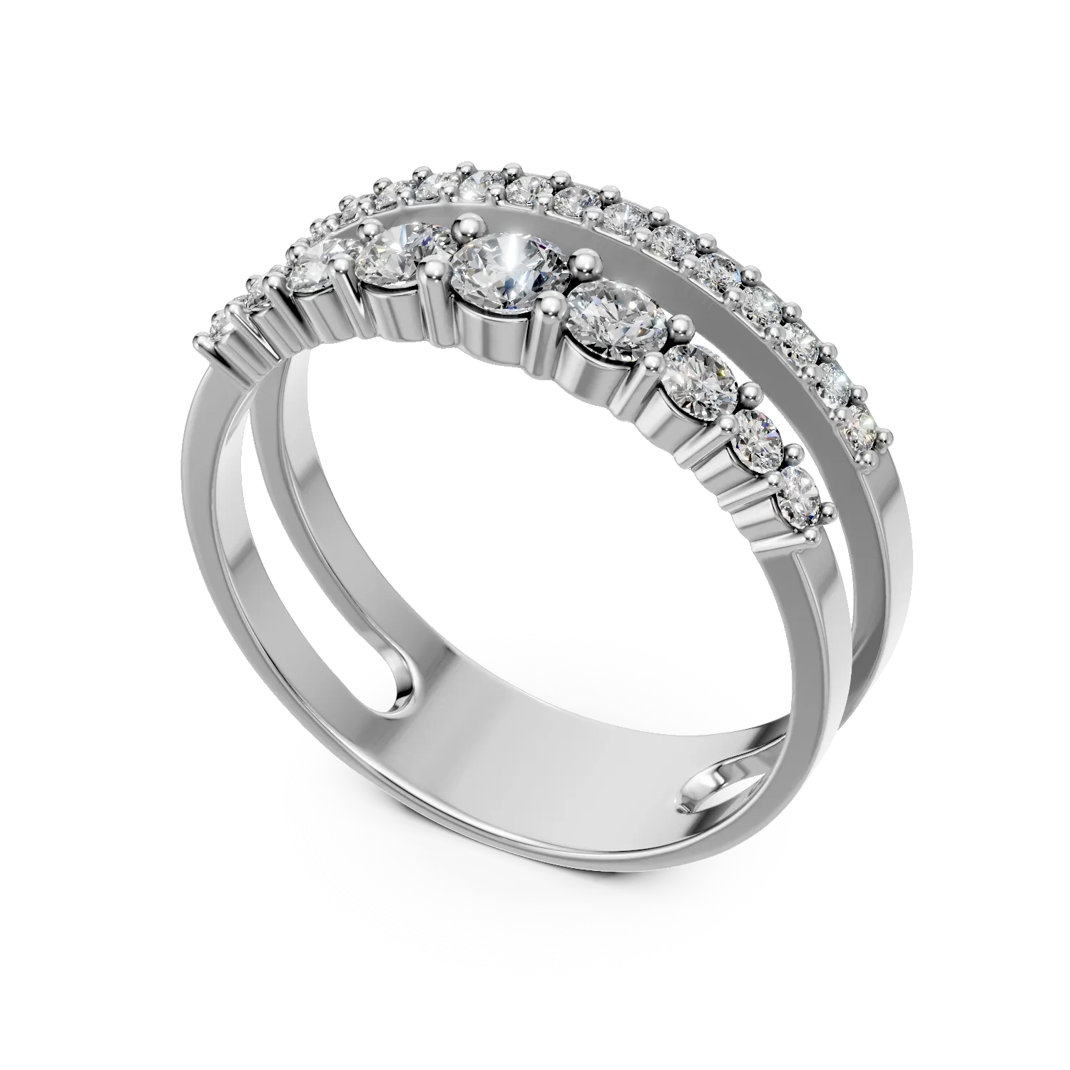 Elegant si rafinat, acest inel dublu din aur alb cu zirconii impresioneaza prin stralucirea delicata si designul sau atemporal. Montura dubla pune in valoare zirconiile ce adauga profunzime si luminozitate. Tonul rece al aurului alb amplifica reflexiile pietrelor, oferind un efect sofisticat si discret. Perfect pentru a completa o tinuta de zi cu un accent pretios sau pentru a insoti momentele speciale, acest inel este o alegere versatila si de bun gust. Creat pentru femeia care apreciaza detaliile fine si eleganta simpla. Descopera frumusetea in colectiile TEILOR!