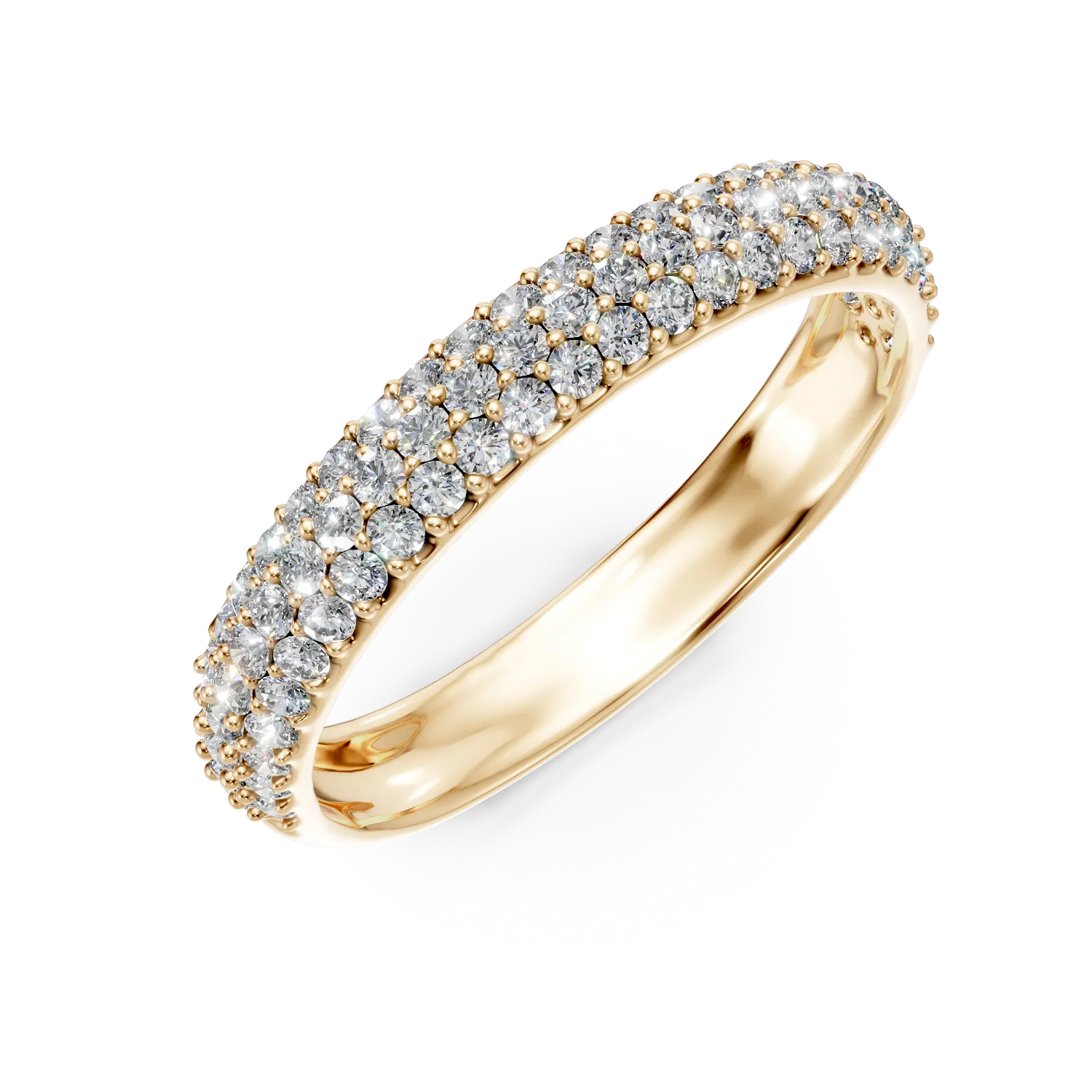Feminitate si atitudine. Un inel semi eternity din aur galben creat din pasiune pentru accesoriile care te fac sa te simti speciala. Alege piesele care confera expresivitate personalitatii tale.