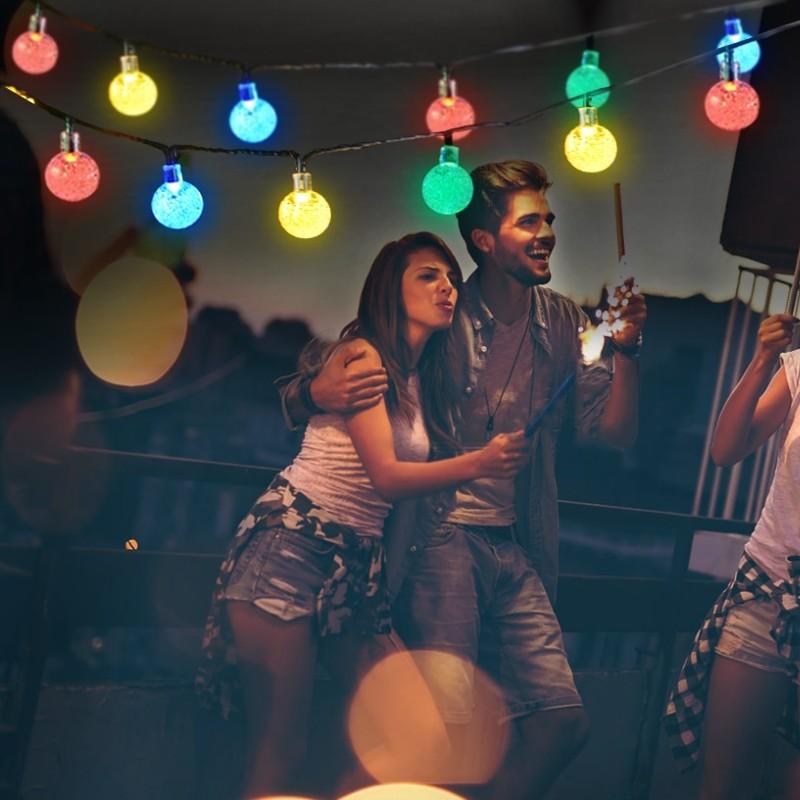 Instalatie solara LED 30 globulete Culori disponibile: multicolor Aceasta instalatie se monteaza in exteriorul casei, dispunand de un mic panou solar care permite incarcarea pe timpul zilei si de un sensor de lumina, ce o face sa functioneze pe timpul noptii. Este ideala pentru orice anotimp si orice fel de eveniment: Craciun, Anul Nou, aniversari, nunti, botezuri, petreceri sau chiar pentru patul copilului. senzor de lumina: se aprinde doar cand afara este intuneric rezistenta la apa jocuri de lumini diferite mod de iluminat static - becurile stau doar aprinse instalatie formata din 30 LED-uri mod de incarcare: solara greutate: 300 grame lungime instalatie: 3 metri dimensiuni panou solar: 6,7 x 6,7 x 2,3 cm diametru bec: 2.2 cm inaltime suport: 21,5 cm panou solar 2V, 0.3W baterie interna 600mAh 100 lumeni timp incarcare: aprox. 6 ore timp functionare aprox. 7-8 ore buton ON/OFF buton pentru schimbarea jocului de lumini temperatura de lucru: minim -20 grade C, maxim 35 grade C Pachetul include: 1 x instalatie solara 30 beculete LED 1 x suport pentru infigere in pamant (pentru gradina)