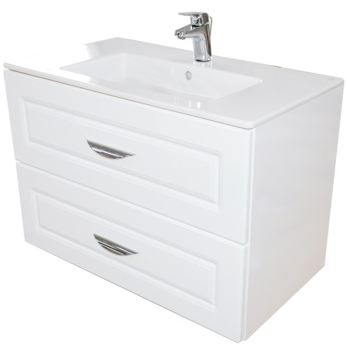Detalii: Carcasa din PAL alb si usi din MDF infoliat alb. Masca de chiuveta cu lavoar inclus cu dimensiunile 81 x 45 x 55 cm *Bateria nu este inclusa in pret dar se poate achizitiona separat.