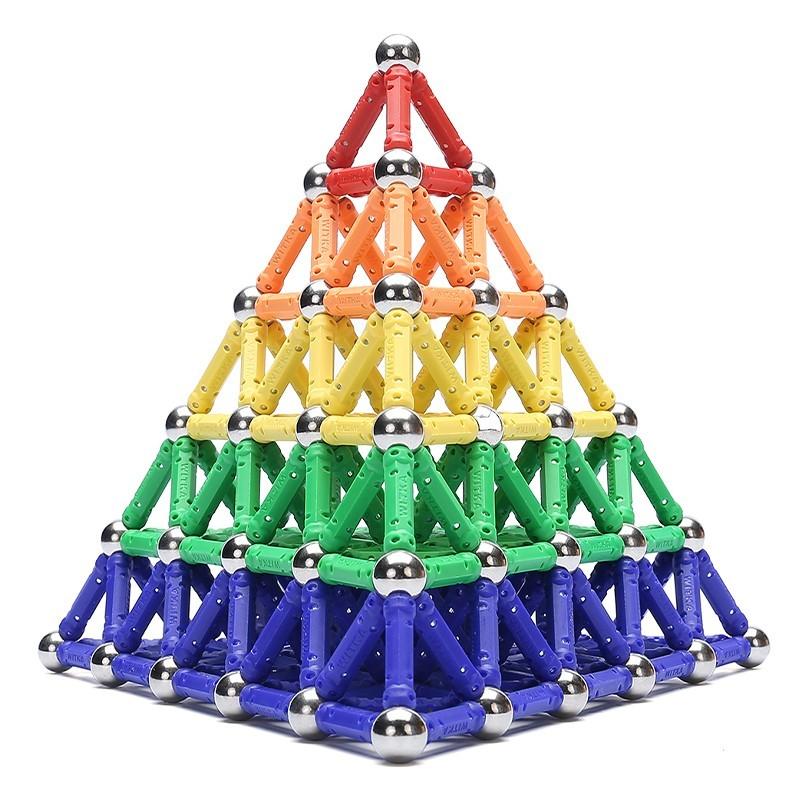 Joc creativ pentru copii, tip Magnastix Pachetul 108 piese, Magnetic Sticks Set de constructie compus din magneti, bile metalice. Jocul permite combinarea pieselor astfel incat sa se poata construi nenumarate structuri geometrice. Stimuleaza creativitatea, dezvoltata abilitatile manuale, logica, capacitatea de analiza. Ajuta la vederea in spatiu si la intelegerea fortei magnetice din fizica, forta magnetica fiind o alta forta fundamentala a universului pe linga cea gravitationala. Este potrivit pentru copii de toate varstele incepand de la 3 ani.