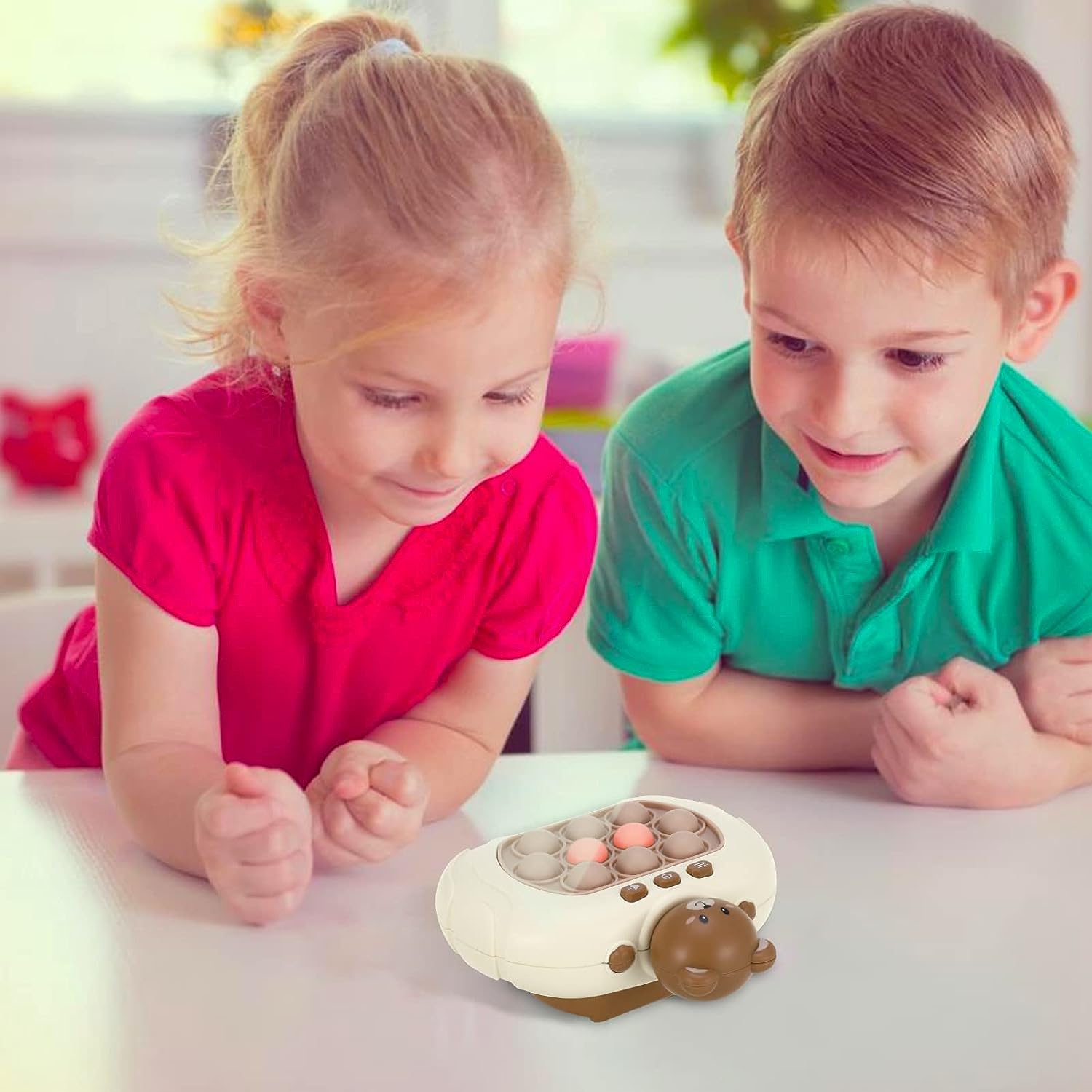 Jucarie electronica Pop It, 50 de niveluri, senzoriala Ajuta memoria si indemanarea, lumini si sunete, 12.8 x 12.1 cm Moduri Distractive la Pachet: 4 modalitati de joc care iti ofera varietatea si entuziasmul unei petreceri in miniatura. De la 50 de niveluri pline de provocari pana la concurarea cu prietenii in modul Multiplayer. Aduc popcornul! Jucarie Antistres: Nu numai ca te distrezi, dar mai scapi si de stres. Bulele luminoase te asteapta sa le apesi, oferindu-ti sunete care iti vor calma sufletul. Pana si locul de munca va deveni mai vesel! Joc Educativ: Perfectioneaza abilitatile copiilor in timp ce se distreaza, imbunatatind coordonarea ochi-mana si gandirea logica. Un adevarat antrenor pentru micile genii! Calitate de Top: Fabricata din silicon premium, aceasta jucarie rezistenta la bule e gata sa te insoteasca oriunde te duci. Nimic nu te opreste sa te distrezi la nesfarsit! Cadoul Perfect: De la aniversari pana la Craciun, e cadoul esential pentru orice ocazie. Fa-le o surpriza celor dragi si sparge monotonia! Cu asa o combinatie de distractie, invatare si calitate, acest Pop It este mai mult decat o jucarie – este o achizitie esentiala pentru fiecare casa.
