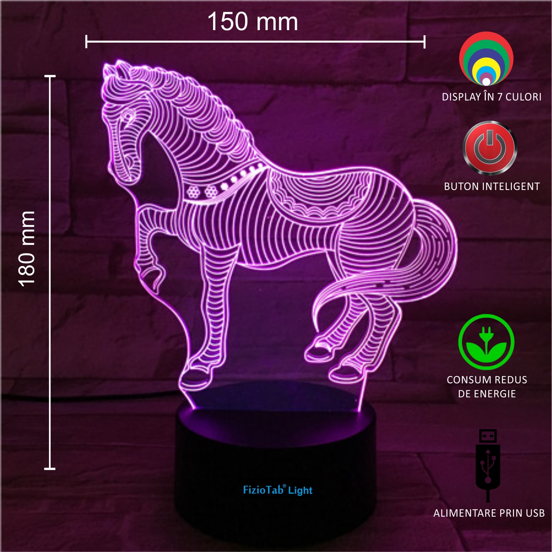 Lampa de veghe 3D LED FizioTab® Light - Cal 7 Culori, Lumina Ambientala, Alimentare USB Lampa 3D FizioTab® Light este cu siguranta ceva inedit in orice casa, cu un design simplu si stilat ce personalizeaza fiecare incapere. Este alegerea perfecta pentru dormitoare, camere de copii, camere de joaca, birouri, restaurante, cafenele, etc. VIZUALIZARE 3D Efect unic de lumina ce transforma un obiect 2D intr-o iluzie 3D LED MULTICOLOR - la o simpla apasare de buton se schimba culoarea automat: rosu, verde, albastru, galben, cyan, mov, alb. Culoarea poate fi schimbata si manual de fiecare data cand se atinge butonul. LAMPA INEDITA - CADOUL PERFECT Lampa 3D este cadoul ideal pentru copii, familie sau prieteni. Copiii vor adora aceasta lampa, fiind ideala pentru noapte. Sigura de folosit, nu se incalzeste. Material - acryl. Tehnologie LED - consum redus de energie: 0,5w/h (0,012 kw/24h) Durata mare de functionare - peste 10.000 ore Voltaj: 5V Greutate - 500 g. Alimentare cu cablu USB (inclus) sau baterii 3 x AA (neincluse. Continut pachet: 1 x 3D placa acryl 1 x suport cu tehnologie LED 1 x cablu USB 1 x instructiuni