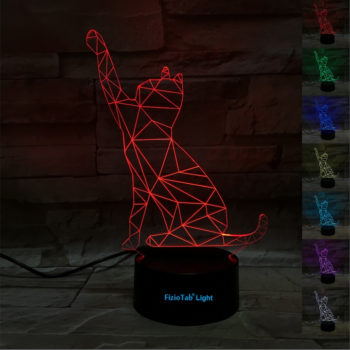 Lampa de veghe 3D LED FizioTab® Light 7 Culori, Lumina Ambientala, Alimentare USB Lampa 3D FizioTab® Light este cu siguranta ceva inedit in orice casa, cu un design simplu si stilat ce personalizeaza fiecare incapere. Este alegerea perfecta pentru dormitoare, camere de copii, camere de joaca, birouri, restaurante, cafenele, etc. VIZUALIZARE 3D Efect unic de lumina ce transforma un obiect 2D intr-o iluzie 3D. LED MULTICOLOR - la o simpla apasare de buton se schimba culoarea automat: rosu, verde, albastru, galben, cyan, mov, alb. Culoarea poate fi schimbata si manual de fiecare data cand se atinge butonul. LAMPA INEDITA - CADOUL PERFECT Lampa 3D este cadoul ideal pentru copii, familie sau prieteni. Copiii vor adora aceasta lampa, fiind ideala pentru noapte. Sigura de folosit, nu se incalzeste. Material - acryl. Tehnologie LED - consum redus de energie: 0,5w/h (0,012 kw/24h) Durata mare de functionare - peste 10.000 ore Voltaj: 5V Greutate - 500 grame Alimentare cu cablu USB (inclus) sau baterii 3 x AA neincluse Continut pachet: 1 x 3D placa acryl 1 x suport cu tehnologie LED 1 x cablu USB 1 x instructiuni