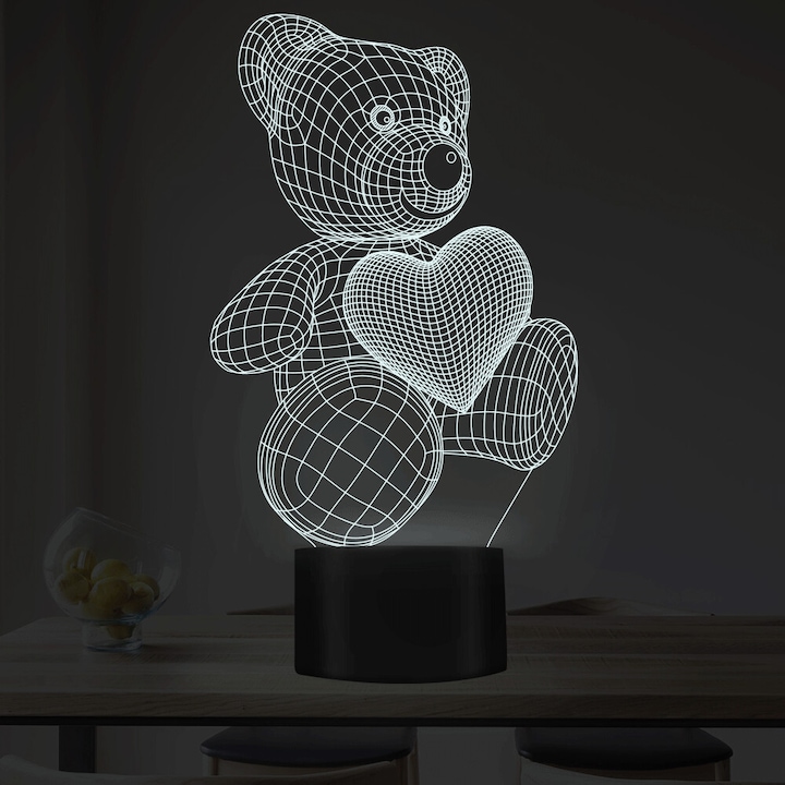 Lampa de veghe 3D LED FizioTab® Light 7 Culori, Lumina Ambientala, Alimentare USB Lampa 3D FizioTab® Light este cu siguranta ceva inedit in orice casa, cu un design simplu si stilat ce personalizeaza fiecare incapere. Este alegerea perfecta pentru dormitoare, camere de copii, camere de joaca, birouri, restaurante, cafenele, etc. VIZUALIZARE 3D Efect unic de lumina ce transforma un obiect 2D intr-o iluzie 3D. LED MULTICOLOR - la o simpla apasare de buton se schimba culoarea automat: rosu, verde, albastru, galben, cyan, mov, alb. Culoarea poate fi schimbata si manual de fiecare data cand se atinge butonul. LAMPA INEDITA - CADOUL PERFECT Lampa 3D este cadoul ideal pentru copii, familie sau prieteni. Copiii vor adora aceasta lampa, fiind ideala pentru noapte. Sigura de folosit, nu se incalzeste. Material - acryl. Tehnologie LED - consum redus de energie: 0,5w/h (0,012 kw/24h) Durata mare de functionare - peste 10.000 ore Voltaj: 5V Greutate - 500 grame Alimentare cu cablu USB (inclus) sau baterii 3 x AA neincluse Continut pachet: 1 x 3D placa acryl 1 x suport cu tehnologie LED 1 x cablu USB 1 x instructiuni