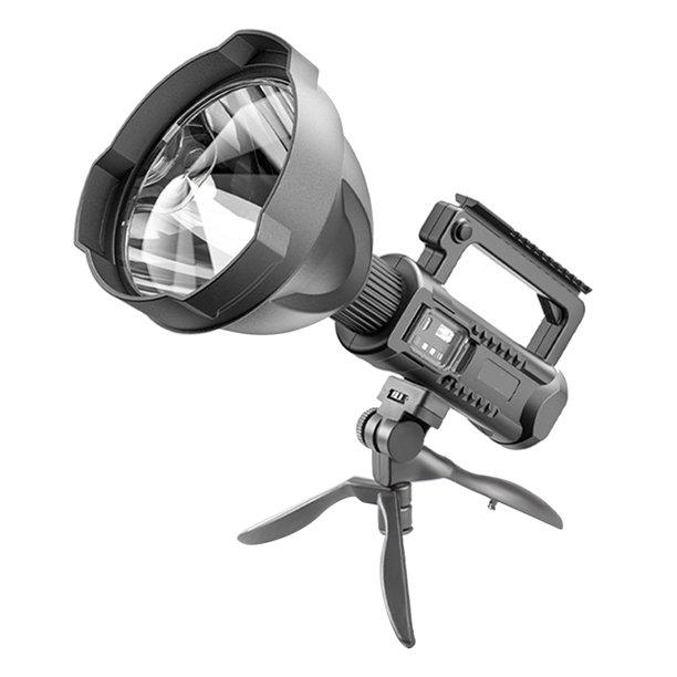 Lanterna de mana W590 cu trepied Baterie externa 1000 W, LED puternic P50 Lanterna LED, reincarcabila, functie Powerbank, 4 moduri iluminare, trepied inclus - lanternele cu LED isi gasesc utilitatea intr-o multitudine de activitati: la pescuit, in curte si gradina, in masina, in actiuni de cautare si salvare, paza si securitate, paza, cautare si supraveghere perimetru si suprafete mai extinse, la reparatii in atelier, service auto ori garaj, in camping ori plimbari si catarat pe munte. Patru faze de iluminare: maxim, 2 x economic si flash. Se actioneaza prin apasari succesive pe butonul cauciucat situat pe maner. Unghi mare de dispersie a luminii. Corpul lanternei si manerul sunt fabricate din plastic ABS. Dispune de iesire USB - functie de Powerbank, pentru incarcarea dispozitivelor mobile, in partea de jos a manerului. Tot acolo este si o iesire micro USB, pentru incarcarea acumulatorului lanternei. Aceste doua iesiri sunt protejate de umezeala prin intermediul unui capacel din plastic, etansat cu silicon. Pe partea opusa a manerului se afla locasul in care se infileteaza trepiedul pliabil. Corpul lanternei si manerul sunt fabricate din plastic ABS. Dispune de iesire USB– functie de Powerbank, pentru incarcarea dispozitivelor mobile, in partea de jos a manerului. Tot acolo este si o iesire micro USB, pentru incarcarea acumulatorului lanternei. Aceste doua iesiri sunt protejate de umezeala prin intermediul unui capacel din plastic, etansat cu silicon. Pe partea opusa a manerului se afla locasul in care se infileteaza trepiedul pliabil. Lanterna cu LED dispune de o putere de 4000 Lumeni si 40W. Datorita reflectorului de dimensiuni mari lanterna bate pe o distanta mare de circa 500-600m. Lanterna este echipata cu acumulatori Li-ion de capacitate mare ce ii asigura o autonomie pe masura. Dispune si de Functia POWER BANK ce va permite sa incarcati telefonul sau alte dispozitive. Incarcarea se face prin intermediul mufei Micro-USB unde sunt pozitionate si 3 leduri ce indica capacitatea acumulatorilor. Lanternele cu LED sunt economice si confera putere de iluminare si focalizare. Lanternele cu LED isi gasesc utilitatea intr-o multitudine de activitati: la pescuit, in curte si gradina, in masina, in actiuni de cautare si salvare, paza si securitate, paza perimetru, la reparatii in atelier, service auto ori garaj, in camping ori plimbari si catarat pe munte. Corpul lanternei si manerul sunt fabricate din plastic ABS. Lanterna dispune de iesire USB, functie de Powerbank pentru incarcarea dispozitivelor mobile, aflate in partea de jos a manerului. Tot acolo este si o iesire micro USB, pentru incarcarea acumulatorului lanternei. Caracteristici: Model: W 591 Bec: LED Tip LED: XHP50 Putere: 15W Alimentare: USB Timp de incarcare: 5-8 ore Timp de operare: 4-6 ore 4 faze de iluminare: maxima, medie, economica, stroboscop Baterie incorporate Impermeabilitate: IPX6 Material: ABS Culoare: negru Dimensiuni: 27 lungime x 12 cm diametru Pachetul include: 1 x Lanterna W 590 1 x Trepied 1 x Cablu USB