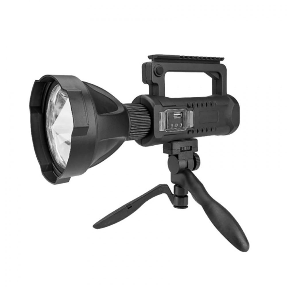 Lanterna de mana W590 cu trepied, baterie externa 1000 W, LED puternic P50 Lanterna LED, reincarcabila, functie Powerbank, 4 moduri iluminare, trepied inclus - lanternele cu LED isi gasesc utilitatea intr-o multitudine de activitati: la pescuit, in curte si gradina, in masina, in actiuni de cautare si salvare, paza si securitate, paza, cautare si supraveghere perimetru si suprafete mai extinse, la reparatii in atelier, service auto ori garaj, in camping ori plimbari si catarat pe munte. Patru faze de iluminare: maxim, 2 x economic si flash. Se actioneaza prin apasari succesive pe butonul cauciucat situat pe maner. Unghi mare de dispersie a luminii. Corpul lanternei si manerul sunt fabricate din plastic ABS. Dispune de iesire USB - functie de Powerbank, pentru incarcarea dispozitivelor mobile, in partea de jos a manerului. Tot acolo este si o iesire micro USB, pentru incarcarea acumulatorului lanternei. Aceste doua iesiri sunt protejate de umezeala prin intermediul unui capacel din plastic, etansat cu silicon. Pe partea opusa a manerului se afla locasul in care se infileteaza trepiedul pliabil. Corpul lanternei si manerul sunt fabricate din plastic ABS. Dispune de iesire USB– functie de Powerbank, pentru incarcarea dispozitivelor mobile, in partea de jos a manerului. Tot acolo este si o iesire micro USB, pentru incarcarea acumulatorului lanternei. Aceste doua iesiri sunt protejate de umezeala prin intermediul unui capacel din plastic, etansat cu silicon. Pe partea opusa a manerului se afla locasul in care se infileteaza trepiedul pliabil. Lanterna cu LED dispune de o putere de 4000 Lumeni si 40W. Datorita reflectorului de dimensiuni mari lanterna bate pe o distanta mare de circa 500-600m. Lanterna este echipata cu acumulatori Li-ion de capacitate mare ce ii asigura o autonomie pe masura. Dispune si de Functia POWER BANK ce va permite sa incarcati telefonul sau alte dispozitive. Incarcarea se face prin intermediul mufei Micro-USB unde sunt pozitionate si 3 leduri ce indica capacitatea acumulatorilor. Lanternele cu LED sunt economice si confera putere de iluminare si focalizare. Lanternele cu LED isi gasesc utilitatea intr-o multitudine de activitati: la pescuit, in curte si gradina, in masina, in actiuni de cautare si salvare, paza si securitate, paza perimetru, la reparatii in atelier, service auto ori garaj, in camping ori plimbari si catarat pe munte. Corpul lanternei si manerul sunt fabricate din plastic ABS. Lanterna dispune de iesire USB, functie de Powerbank pentru incarcarea dispozitivelor mobile, aflate in partea de jos a manerului. Tot acolo este si o iesire micro USB, pentru incarcarea acumulatorului lanternei. Caracteristici: Model: W 591 Bec: LED Tip LED: XHP50 Putere: 15W Alimentare: USB Timp de incarcare: 5-8 ore Timp de operare: 4-6 ore 4 faze de iluminare: maxima, medie, economica, stroboscop Baterie incorporate Impermeabilitate: IPX6 Material: ABS Culoare: negru Dimensiuni: 31 x 16 cm Pachetul include: 1 x Lanterna W 590 1 x Trepied 1 x Cablu USB