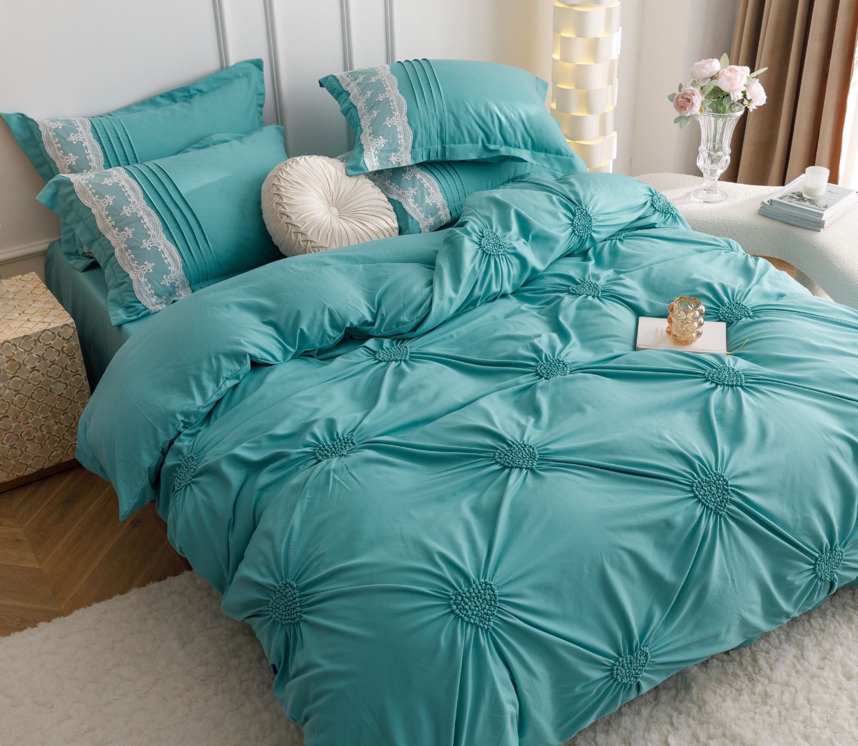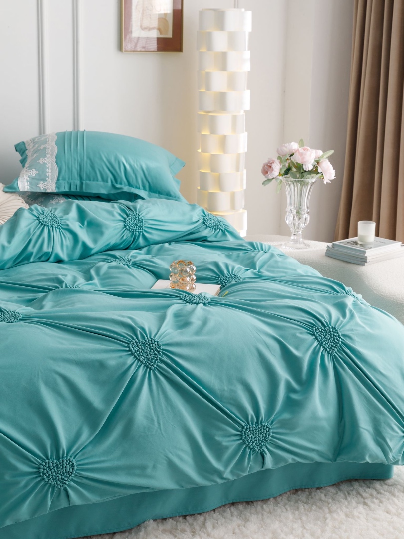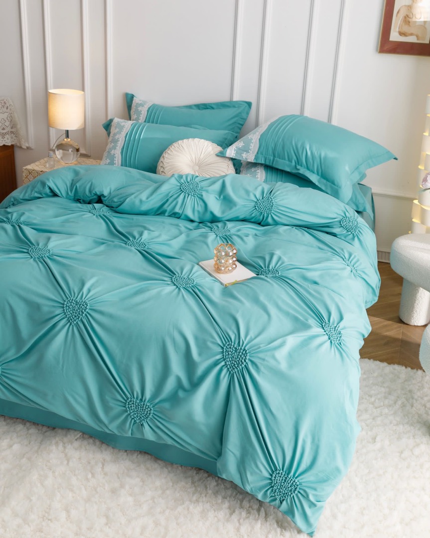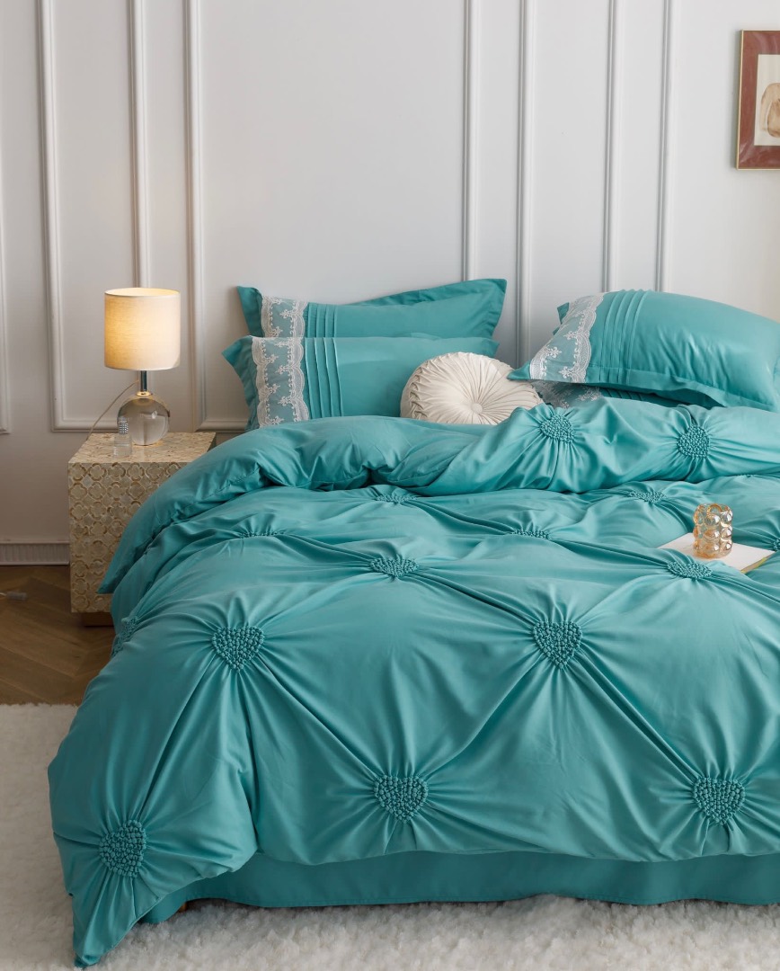 Lenjerie de Pat 6 Piese – Finet Soft Touch cu Pliuri Brodate in forma de Inimioara si Dantela Delicata O lenjerie de pat care imbina eleganta detaliilor brodate cu rasfatul unui material ultra-moale – Finet Soft Touch, acum si mai fin la atingere. Designul cu inimioare brodate si pliuri fine, lucrate atent, este completat de dantela rafinata aplicata pe o latura a fetelor de perna, pentru un efect vizual deosebit si un plus de rafinament in orice dormitor. Material premium: Finet