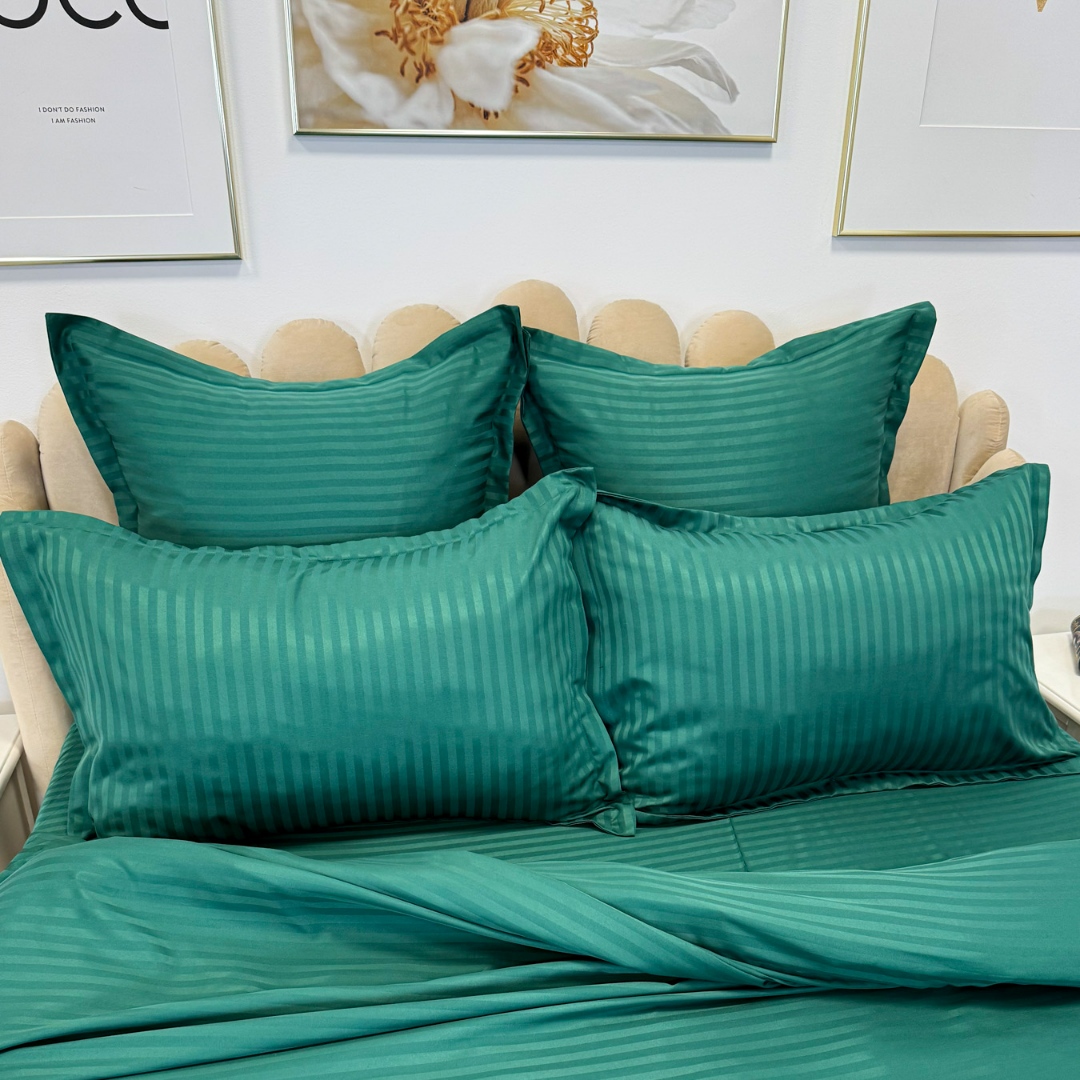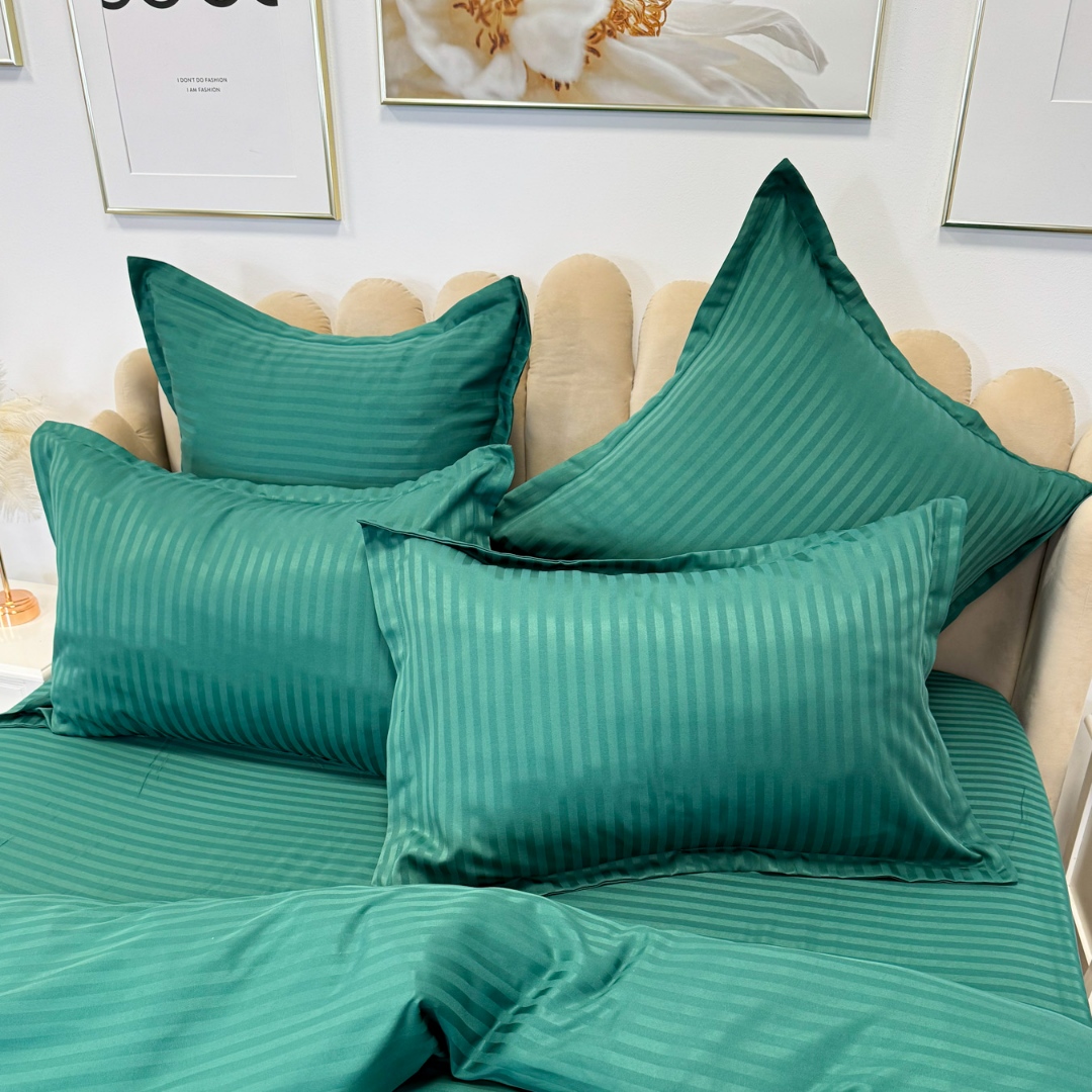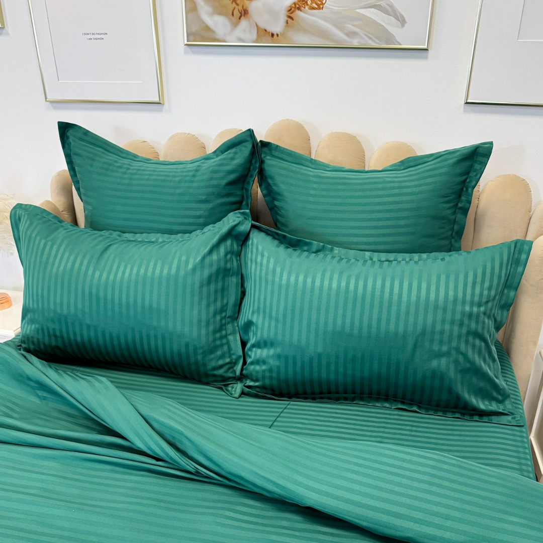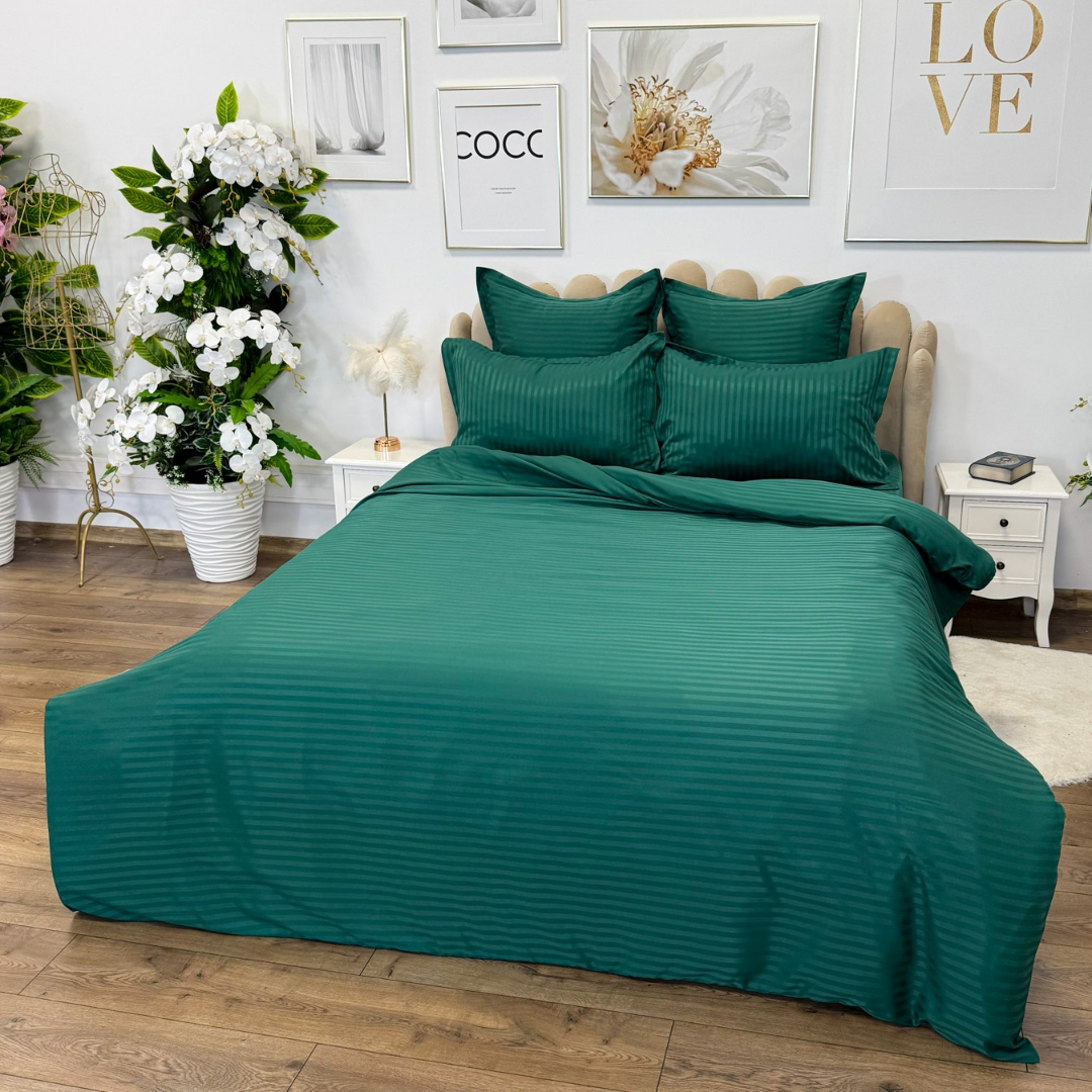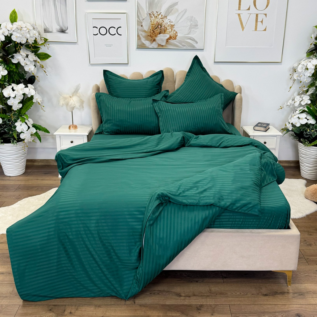 Lenjerie HoReCa, pat dublu, Damasc Finetat Deluxe cu Elastic, 6 piese, Jojo Home, Verde Smarald