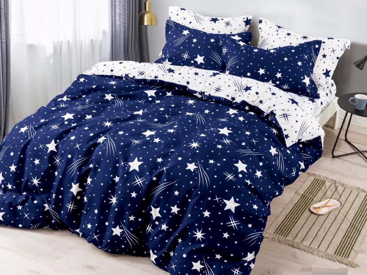 Lenjerie pat 1 PERSOANA, FINET, 4 piese, Jojo Home, Bleumarin-Alb, stelute