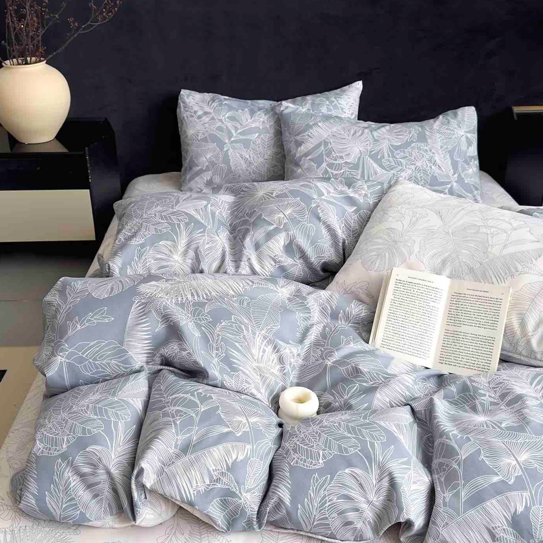 Lenjerie pat dublu, FINET, 6 piese, Jojo Home, Bleu, frunze