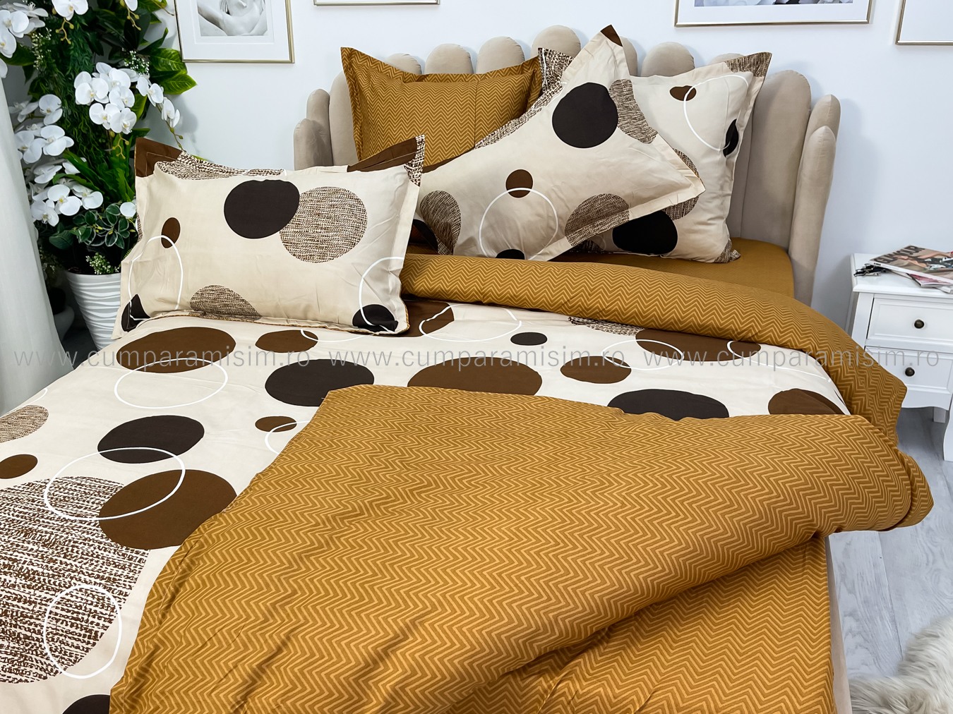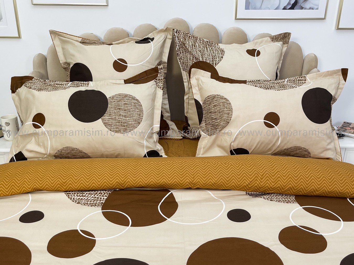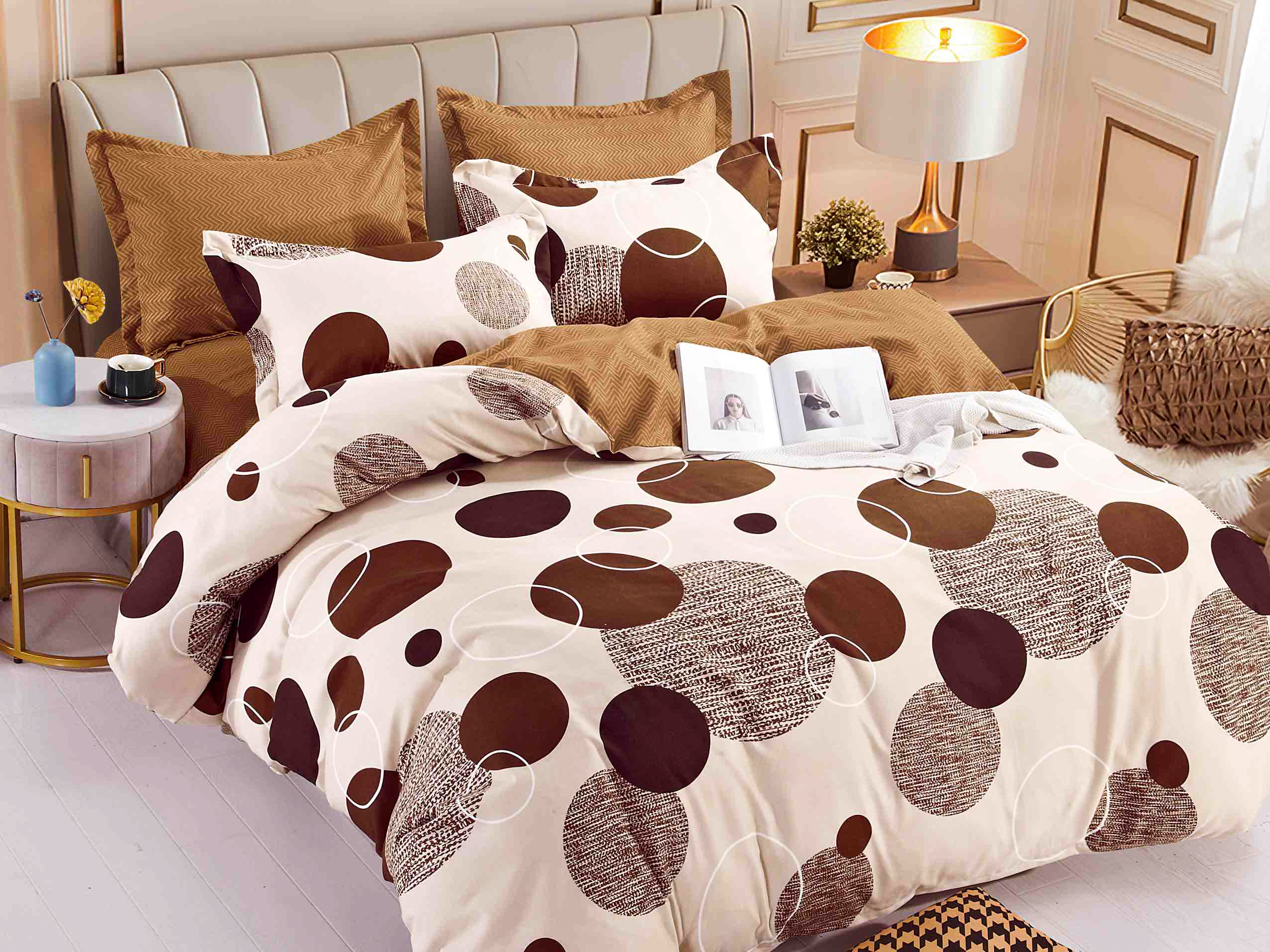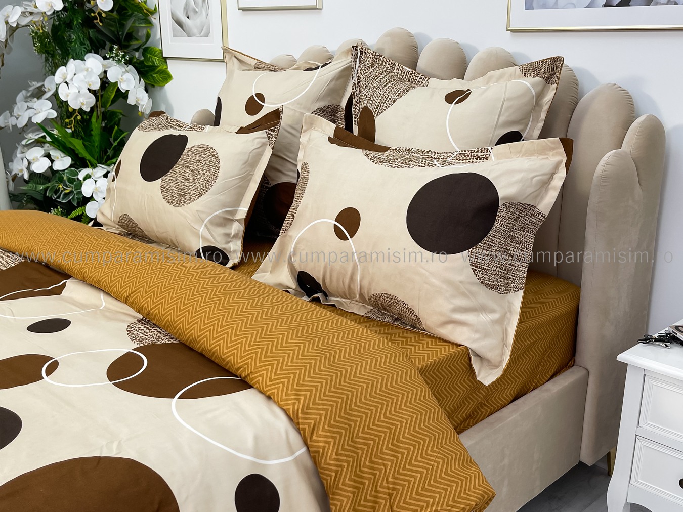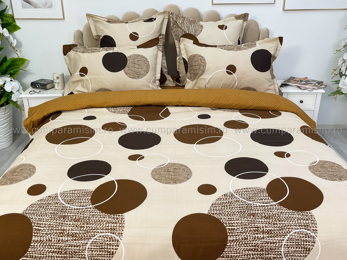 Lenjerie pat dublu, FINET, 6 piese, Jojo Home, Crem-Maro, buline