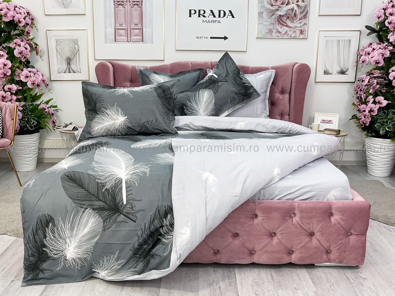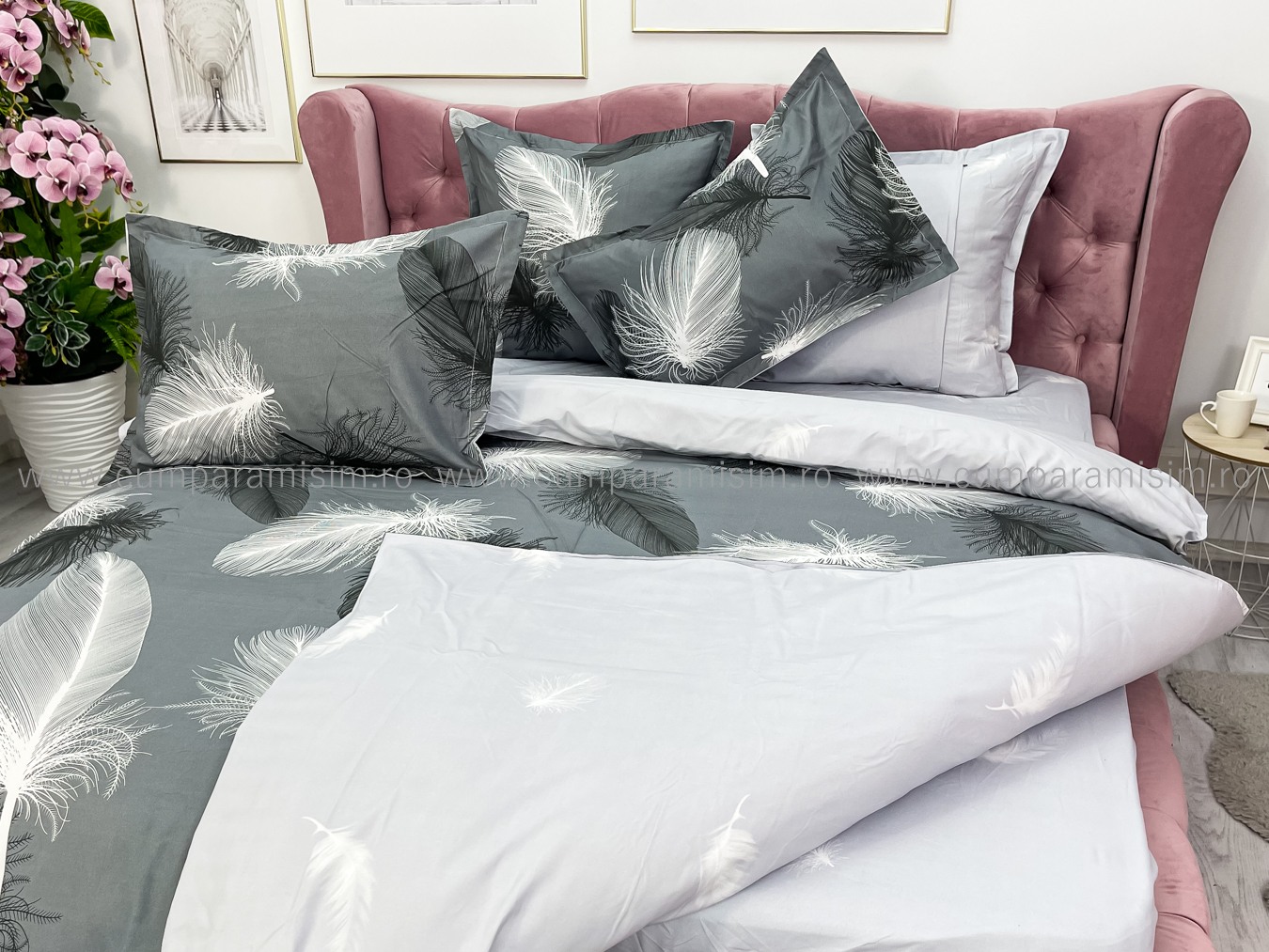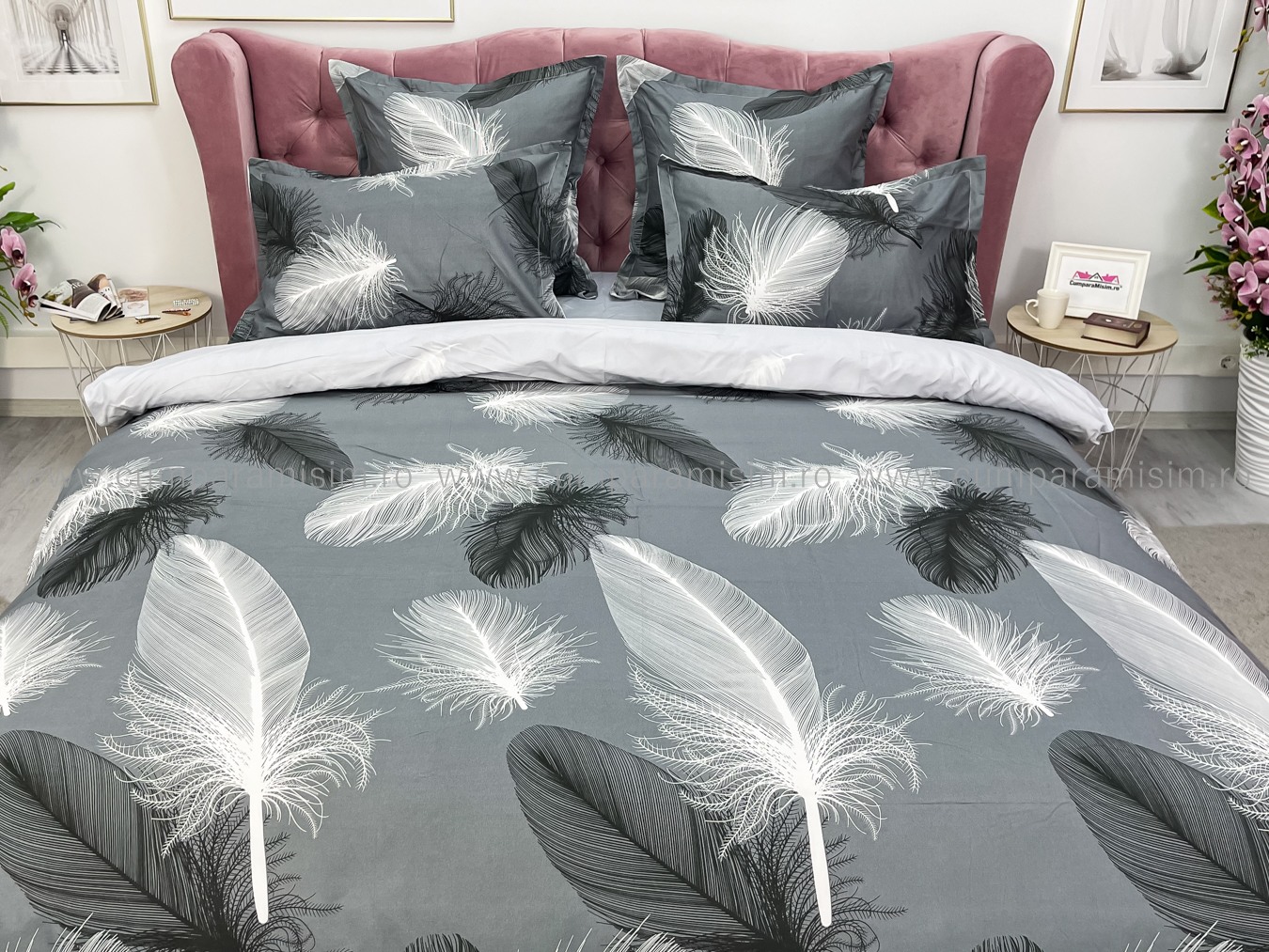 Lenjerie pat dublu, FINET, 6 piese, Jojo Home, Gri-Alb, pene