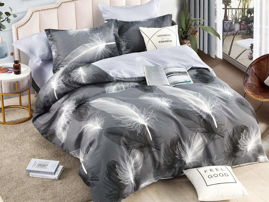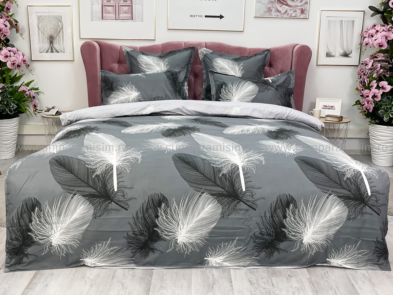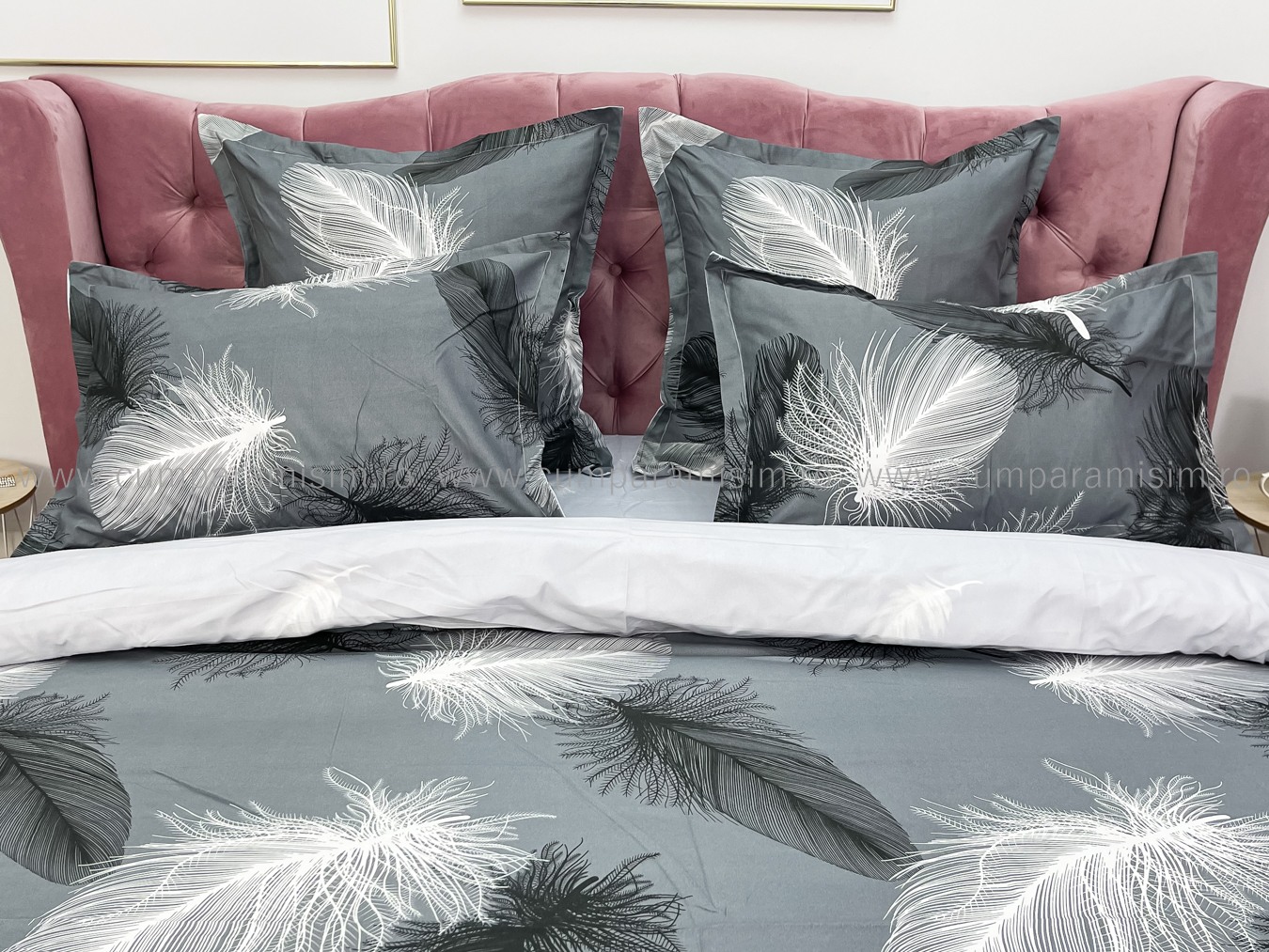 Lenjerie pat dublu, FINET, 6 piese, Jojo Home, Gri-Alb, pene