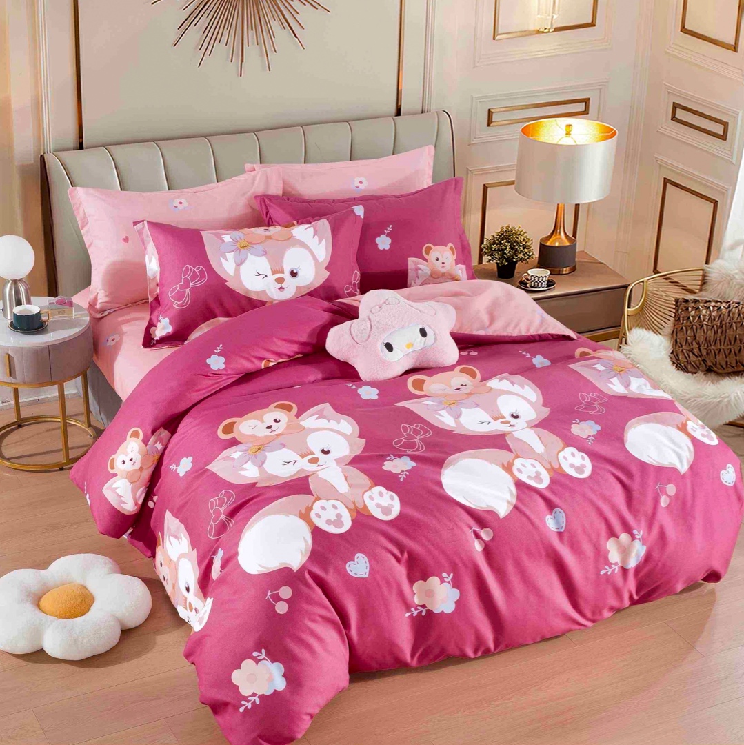 Lenjerie pat dublu, FINET, 6 piese, Jojo Home, Roz, vulpite, ursuleti
