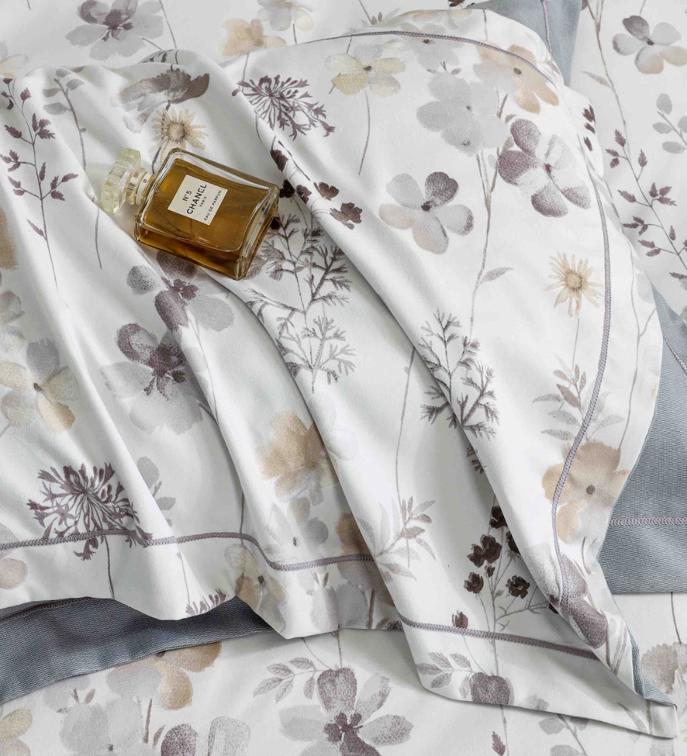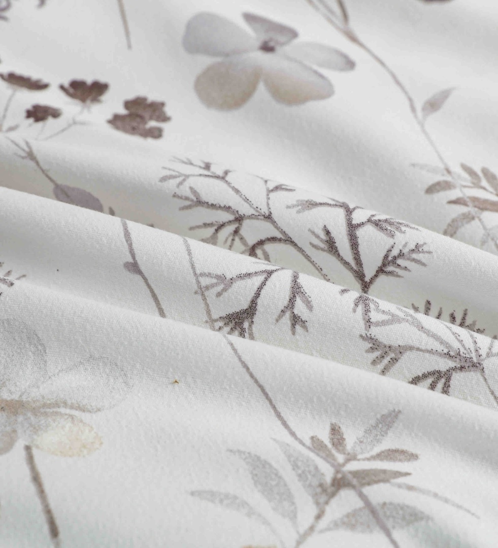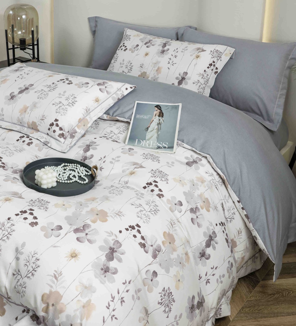 Lenjerie pat dublu, FINET DeLuxe, 6 piese, cu ELASTIC, Jojo Home, Cutie Eleganta, Gri, Flori