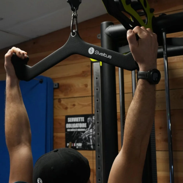 Acest mâner de tracțiune este special conceput pentru a fi utilizat cu un scripete, este ideal pentru a varia exercițiile de forță, vizând mușchii spatelui, umerilor și brațelor. Designul său ergonomic oferă o prindere confortabilă și naturală, favorizând astfel o concentrare optimă în timpul executării. Forma sa ușor curbată, care se adaptează perfect la mâinile dvs., vă va permite să mențineți o postură corectă și să reduceți riscul de accidentări, maximizând în același timp eficiența fiecărei repetări. Suprafața texturată a mânerului asigură o aderență optimă, chiar și cu mâinile transpirate, pentru antrenamente în deplină siguranță. Puteți combina acest mâner cu setul nostru de 3 mânere ergonomice, precum și cu mânerul de tracțiune pentru o varietate completă de posturi. Utilizați aceste mânere împreună cu setul nostru de scripeți pentru un antrenament complet.