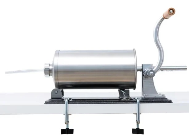 Masina de umplut carnati profesionala inox 6KG, orizontala, 5 palnii, sistem Airstop, Campion CMP1168 Masina de facut carnati profesionala Campion CMP1168 este un echipament orizontal profesional , conceput pentru umplerea carnatilor in conditii optime de igiena , eficienta si durabilitate . Cu o capacitate de 6 kg , acest model este ideal pentru prepararea carnatilor traditionali din porc, vita, oaie sau vanat, fiind potrivit atat pentru uz casnic intensiv , cat si pentru microferme sau macelarii locale . Constructia este realizata integral din inox masiv alimentar , material recunoscut pentru rezistenta la coroziune , curatare usoara si siguranta alimentara . Toate componentele aflate in contact cu carnea sunt fabricate din inox profesional , prevenind contaminarea si pastrand gustul natural al carnatilor . Un avantaj major al acestei masini de umplut carnati inox este sistemul profesional Airstop , conceput pentru eliminarea bulelor de aer din pasta de carne. Acest sistem asigura carnati compacti , uniformi si cu aspect profesional , reducand pierderile si imbunatatind calitatea produsului final. Masina de carnati orizontala Campion CMP1168 este echipata cu sistem de prindere tip menghina , care ofera fixare stabila pe masa de lucru si control sporit in timpul utilizarii. Cilindrul din inox permite o incarcare rapida si o curatare eficienta , iar manerul din lemn cu prindere prin filet asigura o actionare confortabila si sigura. Pachetul include 5 palnii din inox cu diametre diferite ( 10 mm, 17 mm, 21 mm, 25 mm si 29 mm ), inclusiv palnia de 10 mm pentru carnati subtiri de oaie , oferind flexibilitate maxima in procesul de productie. Masina de carnati CMP1168 este produsa de CAMPION si reprezinta o solutie fiabila pentru cei care cauta echipamente profesionale de procesare carne cu performanta ridicata si constructie solida . Caracteristici tehnice Brand: Campion Model: CMP1168 Tip: masina de umplut carnati orizontala Capacitate cilindru: 6 kg Material constructie: inox masiv alimentar Sistem Airstop profesional : da , anti-bule de aer Palnii incluse: 5 bucati inox (10 mm, 17 mm, 21 mm, 25 mm, 29 mm) Tip prindere: menghina pentru fixare stabila Maner: lemn , montaj prin filet Accesorii incluse: manivela , accesoriu prindere masa , cheita insurubat , soclu palnii Greutate: 6 kg Culoare: inox Utilizari Umplerea carnatilor traditionali din porc, vita, oaie sau vanat Prepararea carnatilor subtiri de oaie sau a carnatilor grosi Productie casnica intensiva sau uz semi-profesional Microferme , macelarii locale si ateliere artizanale Obtinerea de carnati naturali , uniformi si bine compactati Masina de umplut carnati profesionala inox Campion CMP1168 este alegerea ideala pentru utilizatorii care doresc calitate profesionala , control total si rezultate constante in procesul de preparare a carnatilor.