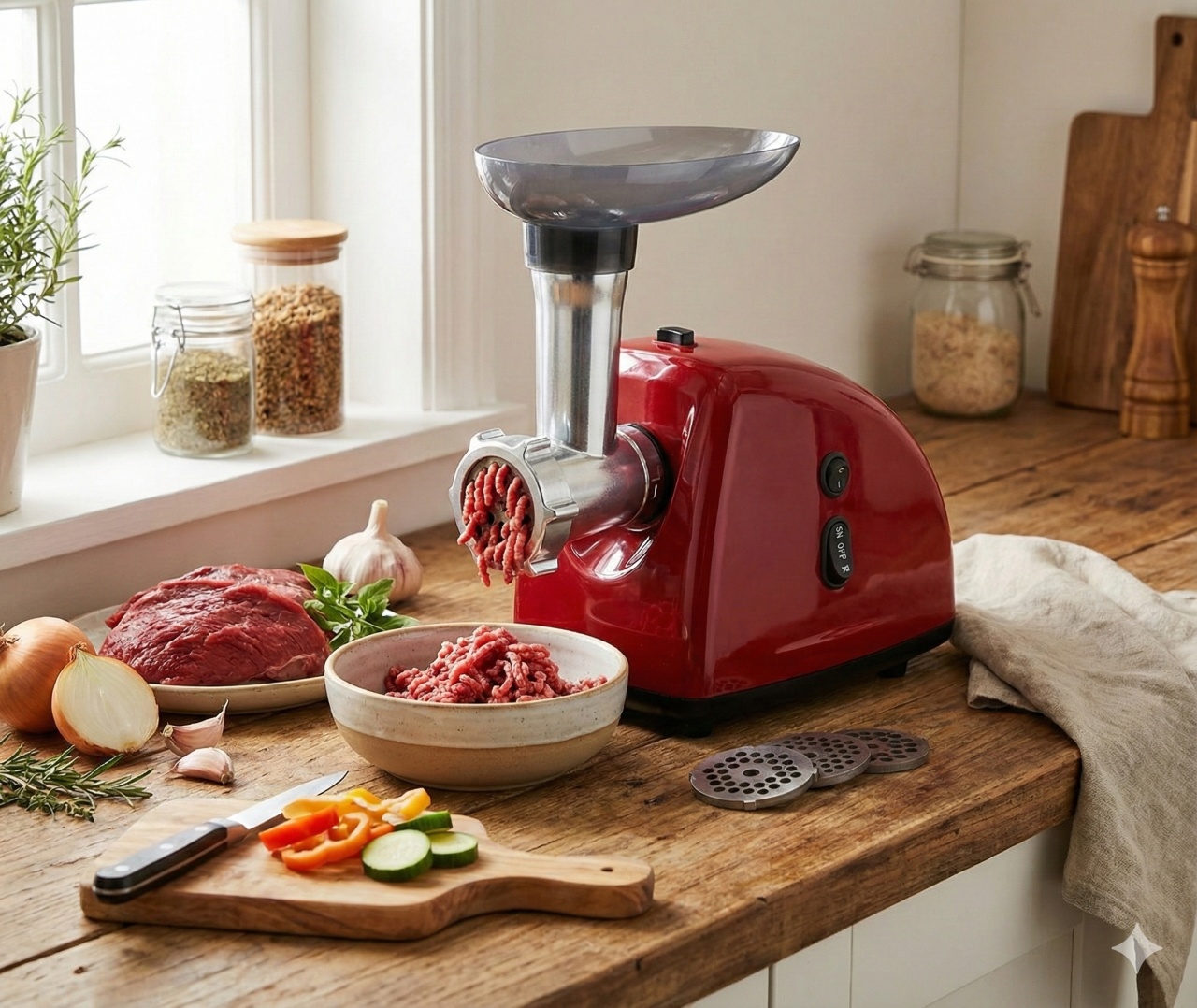 MASINA TOCAT CARNE ELECTRICA 3500W, 1.2KG/MIN, 2 SITE INOX, FUNCTIE REVERSE, ROSIE, HOLZ GERMANY PROFESSIONAL CMP1796 Masina de tocat carne HOLZ Germany Professional CMP1796 , cu motor puternic de 3500W , este proiectata pentru utilizatorii care au nevoie de fiabilitate si performanta ridicata in bucatarie. Oferind o capacitate de productie de 1.2 kg/min , acest model este ideal pentru prepararea chiftelelor, carnatilor de casa, kebbe sau a altor preparate din carne, asigurand o procesare rapida si uniforma. Modelul CMP1796 se remarca prin designul robust, stabil si culoarea rosie moderna, in timp ce functia reverse previne blocajele si permite o utilizare fluida. Cele 2 site din inox (5 mm si 7 mm) ofera posibilitatea de a regla granulatia in functie de reteta dorita, iar cutitul din inox asigura o taiere precisa si rezistenta indelungata. Caracteristici principale: Motor electric 3500W pentru tocare rapida si eficienta Capacitate productie: 1.2 kg/min Functie reverse – previne si elimina blocajele 2 site inox (5 mm si 7 mm) – granulatie fina sau medie Accesoriu pentru carnati inclus Cutit inox de inalta rezistenta Constructie stabila si design rosu atractiv Specificatii tehnice: Brand: HOLZ Germany Professional Model: CMP1796 Tip produs: Masina de tocat carne electrica Putere motor: 3500W Capacitate productie: 1.2 kg/min Alimentare: 230V / 50Hz Numar site: 2 (5 mm, 7 mm) Materiale: inox, ABS, plastic rezistent Dimensiuni: 842 x 5.92 x 9.08 cm Greutate: 2.83 kg Culoare: rosu Continut pachet: Masina de tocat carne HOLZ Germany Professional CMP1796 Melc 2 site inox (5 mm, 7 mm) Cutit inox Accesoriu carnati Platou plastic Accesoriu impingere Manual instructiuni Utilizari Tocarea carnii pentru chiftele, kebbe, sarmale sau amestecuri pentru umpluturi Prepararea carnatilor de casa cu accesoriul inclus Gospodarii si bucatarii rezidentiale sau comerciale mici Solutie eficienta pentru procesarea carnii in cantitati mici si medii, rapid si in siguranta Prin combinatia dintre motorul puternic de 3500W , capacitatea de 1.2 kg/min , cele 2 site inox si functia reverse, HOLZ Germany Professional CMP1796 devine o masina de tocat carne electrica 3500W ideala pentru utilizatorii care cauta putere, stabilitate si versatilitate in bucatarie.