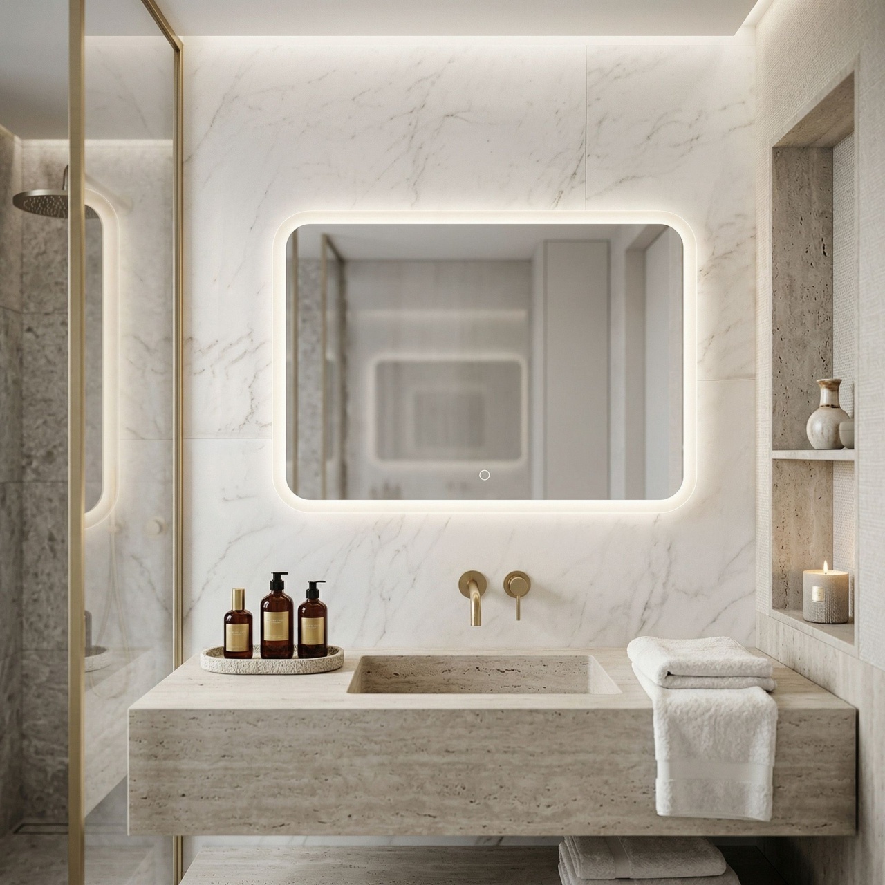 Transformă interiorul băii tale și bucură-te de confort în fiecare zi datorită oglinzii de perete LED Rea 80×60 cm cu ramă opală. Este combinația ideală dintre stil modern și funcționalitate inovatoare, care va încânta fiecare membru al familiei. Realizată din materiale de înaltă calitate, această oglindă dreptunghiulară cu colțuri delicat rotunjite nu doar mărește vizual spațiul, ci asigură și o iluminare perfectă zi de zi.Forma dreptunghiulară cu colțuri rotunjite se încadrează perfect în cele mai noi tendințe, îmblânzind liniile ascuțite ale armăturii și adăugând interiorului eleganță modernă.Rama LED opală cu lățimea de aproximativ 3 cm difuzează frumos lumina, iar panoul extrem de subțire cu o grosime de 3 mm garantează un aspect minimalist și subtil pe perete.Iluminarea LED cu lumină neutră asigură redarea naturală a culorilor, ceea ce este extrem de util la machiajul de dimineață sau la bărbieritul precis.Butonul tactil intuitiv cu opțiune de reglare a intensității permite aprinderea rapidă și reglarea fluidă a luminozității, ajutând la crearea unei atmosfere relaxante în baie în timpul băilor de seară.Cablul practic cu ștecher garantează un montaj rapid și fără probleme, permițând utilizarea imediată a oglinzii fără modificarea instalației electrice a locuinței.Oglinda LED de baie Rea este o alegere sigură pentru persoanele care apreciază confortul în utilizare și designul bine gândit. Datorită execuției solide și tehnologiei economice, poți fi sigur că îți va servi mulți ani. Inalime: 600 Latime : 800 Adâncime: 20 Iluminare LED: Iluminare LED Formă: Dreptunghiular Model: Top Putere: 12 Garantie: 24 luni