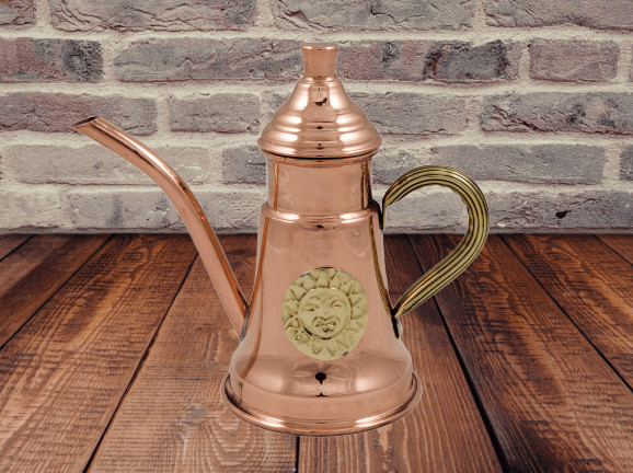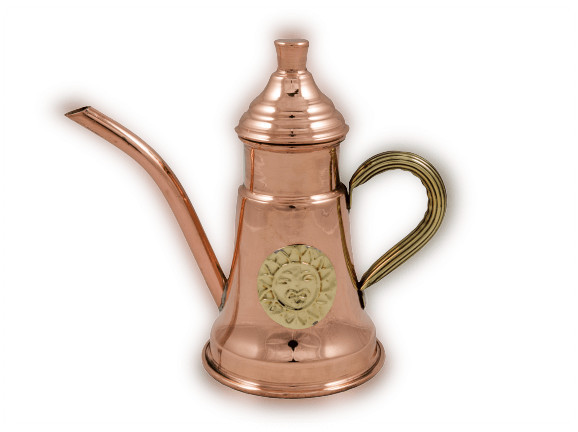 Oliviera din cupru 170 ml pentru ulei de masline, otet sau dressing este accesoriul perfect pentru a avea mereu condimentele preferate pe blat sau pe masa. Este realizata manual din cupru pur 100% si are un maner de alama, cu model gravat tot din alama, care ii da un aspect elegant si distinct. Pe interior este aplicat un strat suplimentar de staniu alimentar, care previne oxidarea datorata uleiului sau otetului si o face potrivita pentru contactul direct cu alimentele. Imbina traditia cu functionalitatea si frumusetea, iar datorita calitatii excelente si constructiei durabile poate fi folosita atat acasa, cat si in Restaurante, Pub uri si in HoReCa. ✅ Functionalitate Potrivita pentru contactul cu alimentele. Ideal pentru uz casnic si profesional. Perfecta pentru a servi ulei de masline, otet sau dressing pentru salata Capacitate flacon: 170 ml. ? Utilizare si dimensiuni Diametru Superior: 4.4 cm Diametru fund: 8,2 cm Lungime: 17,7 cm Latime: 8,2 cm Inaltime: 10,2 cm Inaltime cu capac: 13,7 cm Greutate: 200 gr. Capacitate: 170 ml. ❤️ Traditie, calitate si stil Lucrata manual. Cupru pur 100%. Interior cu strat suplimentar de staniu alimentar pentru ingrijire usoara. Maner de alama. Model de gravat din alama. Daca iti doresti o oliviera care sa fie si practica la utilizare, si frumoasa pe masa sau pe blat, acest model din cupru lucrat manual este o alegere foarte buna atat pentru casa ta, cat si pentru un local cu stil. Specificatii tehnice: Material corp: cupru pur 100% Interior: strat suplimentar de staniu alimentar Maner: alama Model: gravat din alama Potrivita pentru contactul cu alimentele: da Utilizare: uz casnic si profesional Capacitate flacon: 170 ml Diametru superior: 4,4 cm Diametru fund: 8,2 cm Lungime: 17,7 cm Latime: 8,2 cm Inaltime fara capac: 10,2 cm Inaltime cu capac: 13,7 cm Greutate: 200 gr