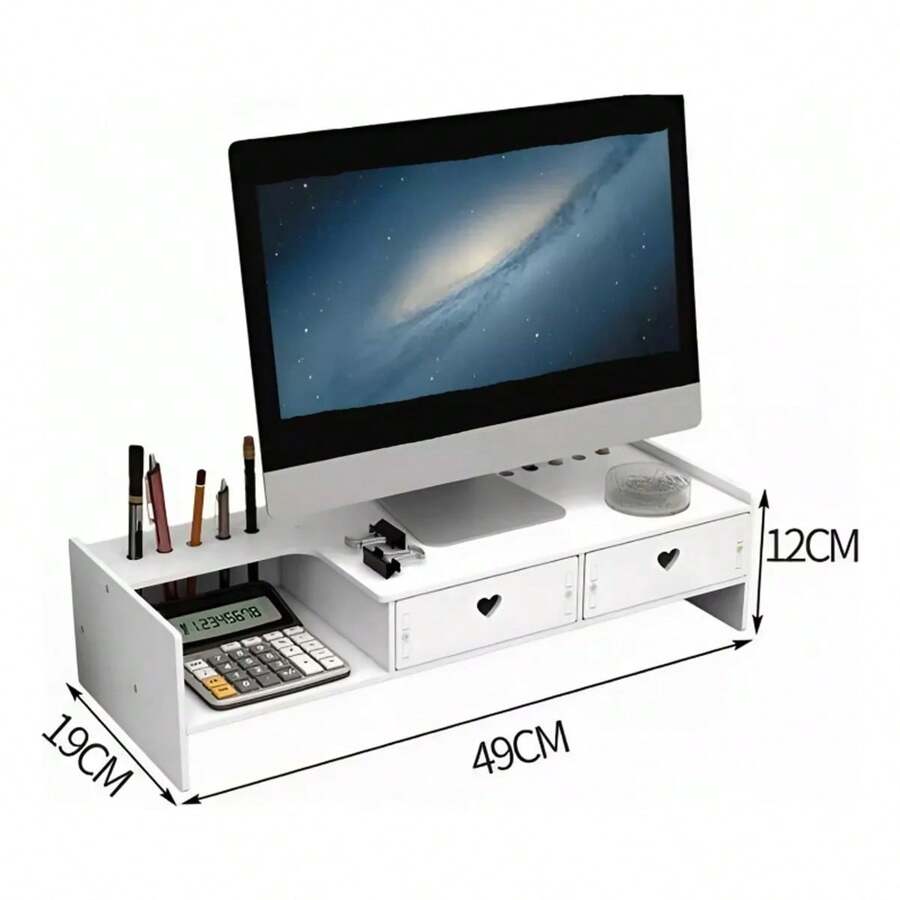 Organizator birou Raft multifunctional PVC, 49 cm Suport multifunctional pentru monitor Matrerial PVC, raft de stocare 12 cm inaltime x 19 cm adancime x 49 cm lungime culoare: alb material compozit: lemn si plastic produs ecologic si inodor Nu contine formaldehide greutate maxima suportata: 10 kg este usor de curatat cu o carpa umeda instalare usoara DIY (do it yourself)