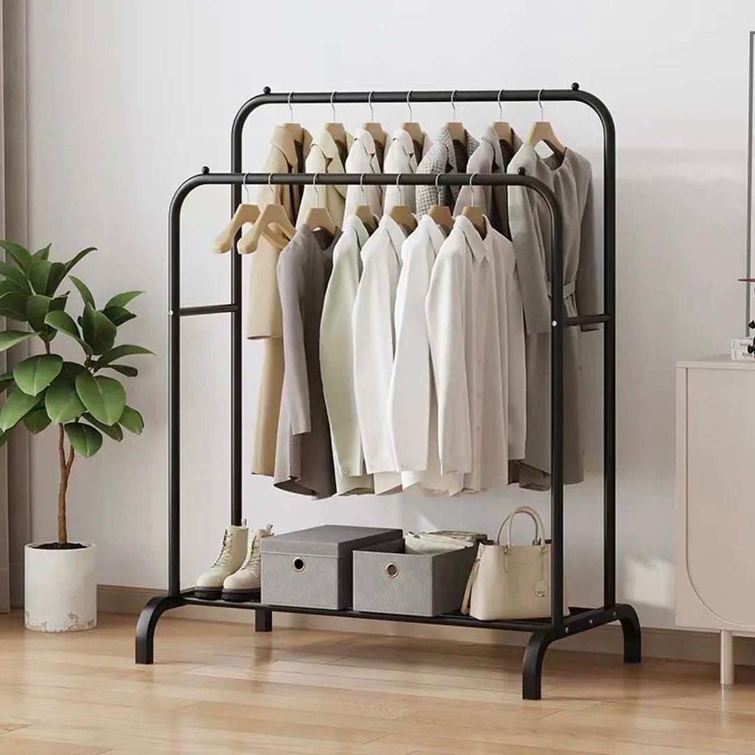 Organizator dublu pentru haine Raftul este perfect pentru companii, magazine, birouri si case! O structura mobila cu roti si instalare usoara, puteti agata multe umerase pe suport. De asemenea, are un suport foarte practic pentru pantofi. Te ajuta in aranjarea si ordonarea hainelor Este practic si nu ocupa mult spatiu Se poate muta foarte usor datorita greutatii sale reduse Incarcare maxima: maxim 35 kg Dimensiuni produs: 143 x 96 x 42 cm Greutate produs: 2 kg Un aspect de bun gust face ca suportul sa se potriveasca in orice interior. Suportul poate fi folosit pentru uscarea hainelor. De asemenea, este perfect pentru depozitarea hainelor de iarna.