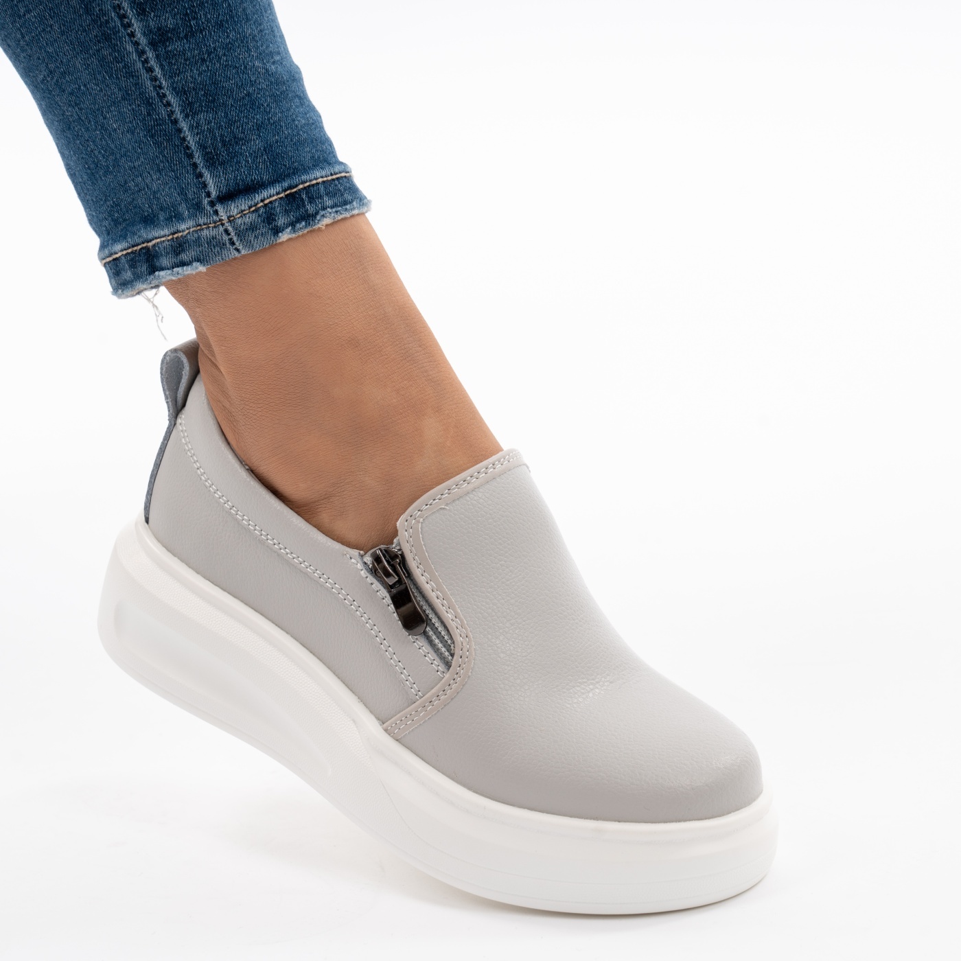 ✅MATERIAL: Piele Naturala ✅CULOARE:Gri ✅INALTIME TALPA: 5 CM ✅Pantofi Casual ✅ INFO Pantofii din piele naturală sunt o opțiune populară pentru persoanele care caută pantofi durabili și confortabili. Acești pantofi sunt realizați din piele naturală, care este un material durabil și respirabil, ceea ce îi face ideali pentru purtatul zilnic.