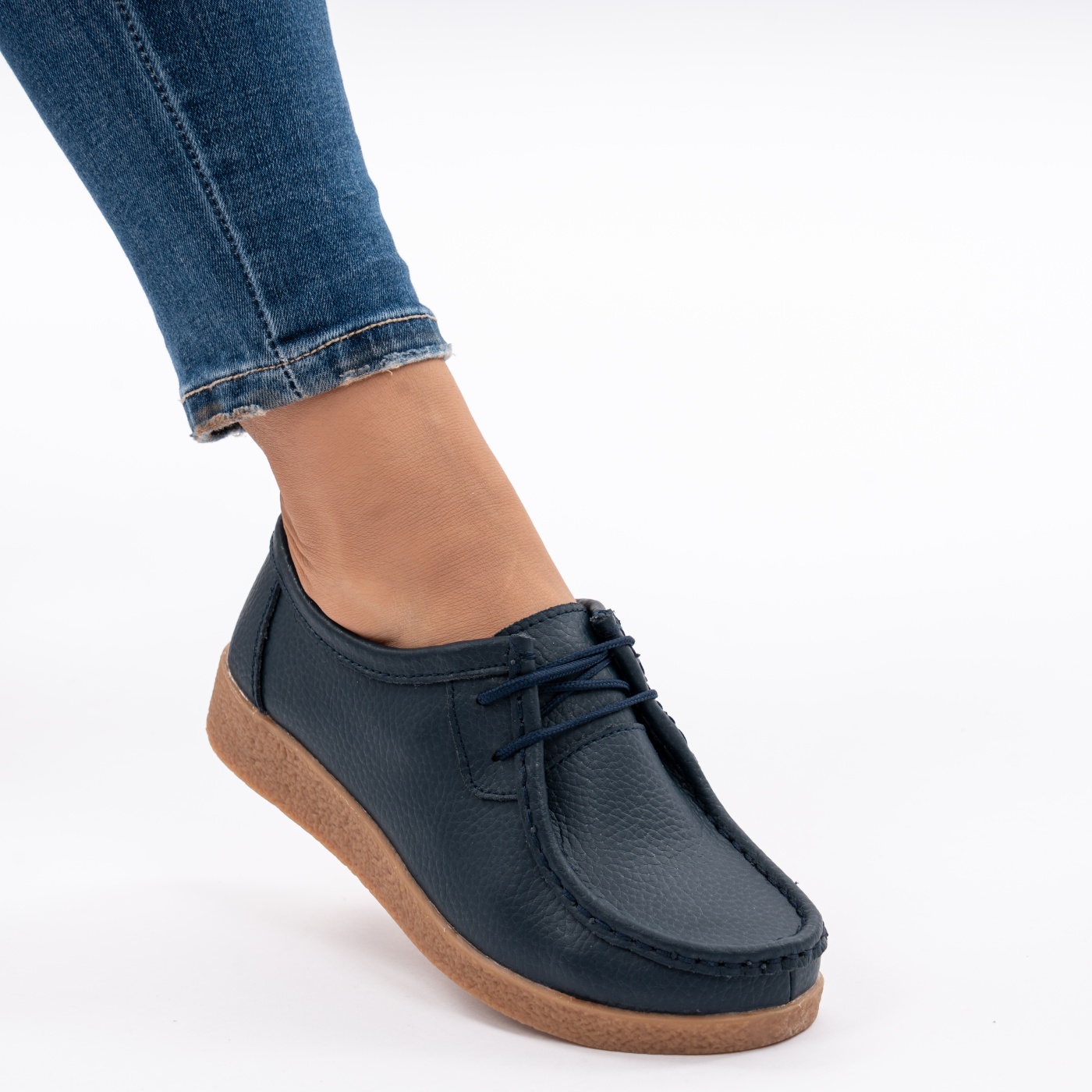 ✅MATERIAL: Piele Naturala ✅CULOARE: Albastru ✅INALTIME TALPA: 3CM ✅Pantofi Casual ✅TIP INCHIDERE:Siret