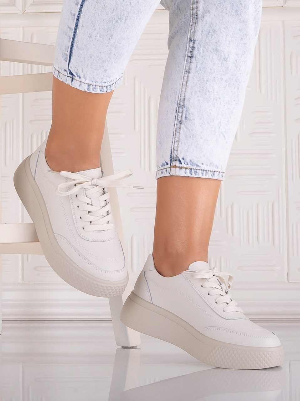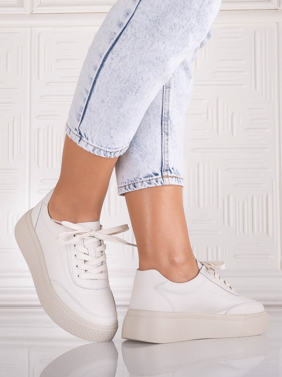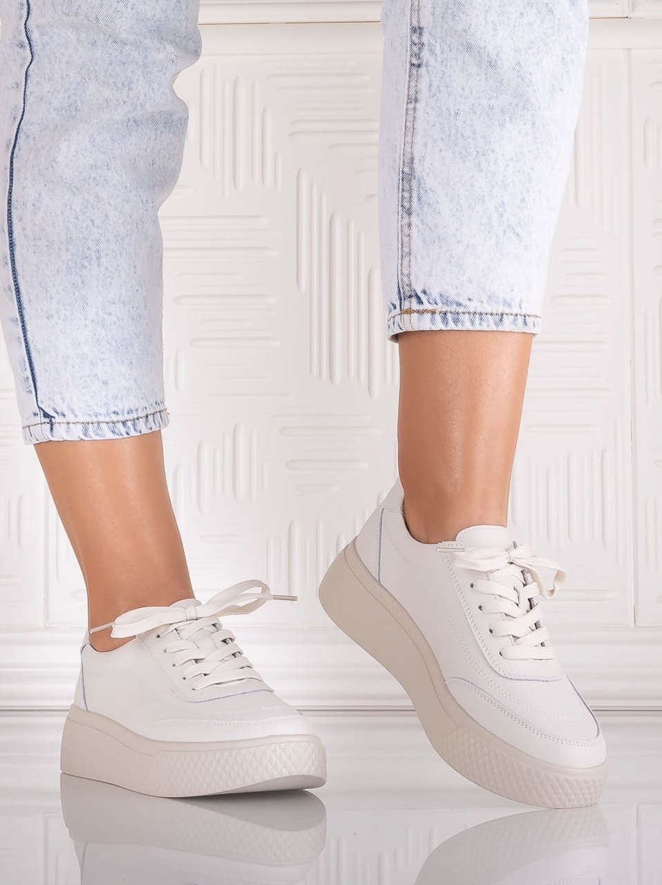 Pantofi dama Casual Albi din Piele Ecologica Nilasa