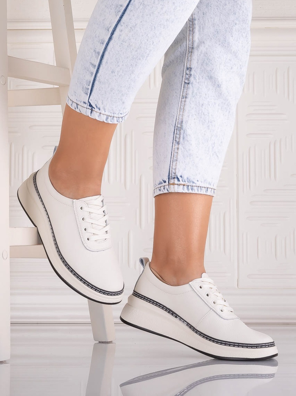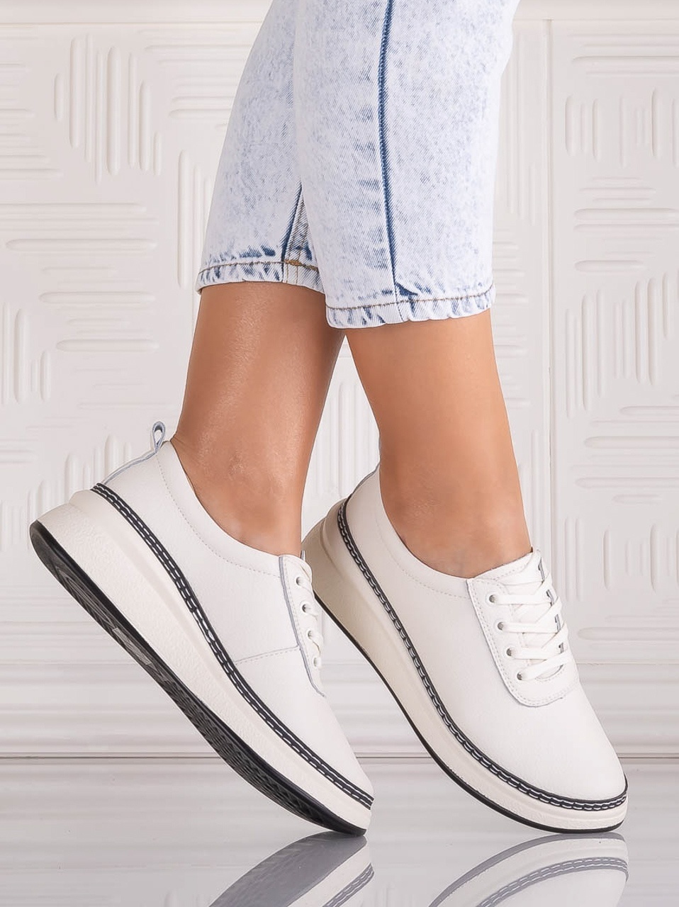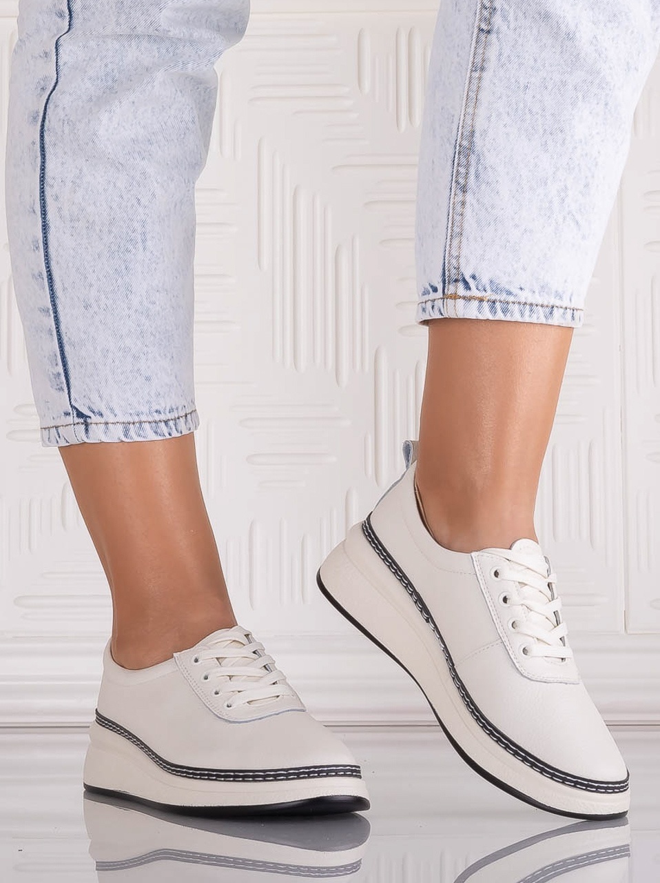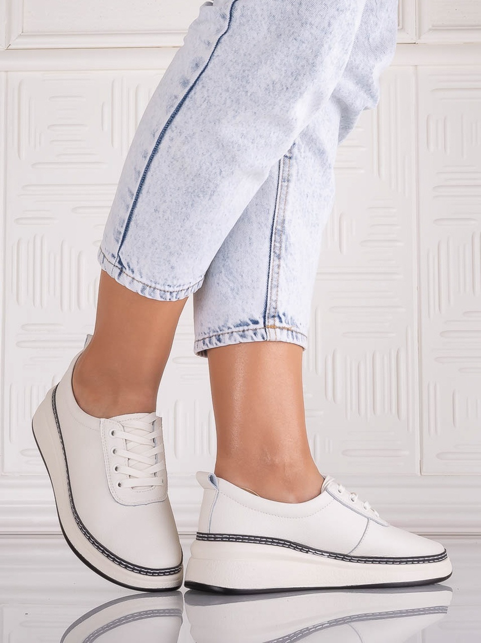 Pantofi dama Casual Albi din Piele Ecologica Nilasa