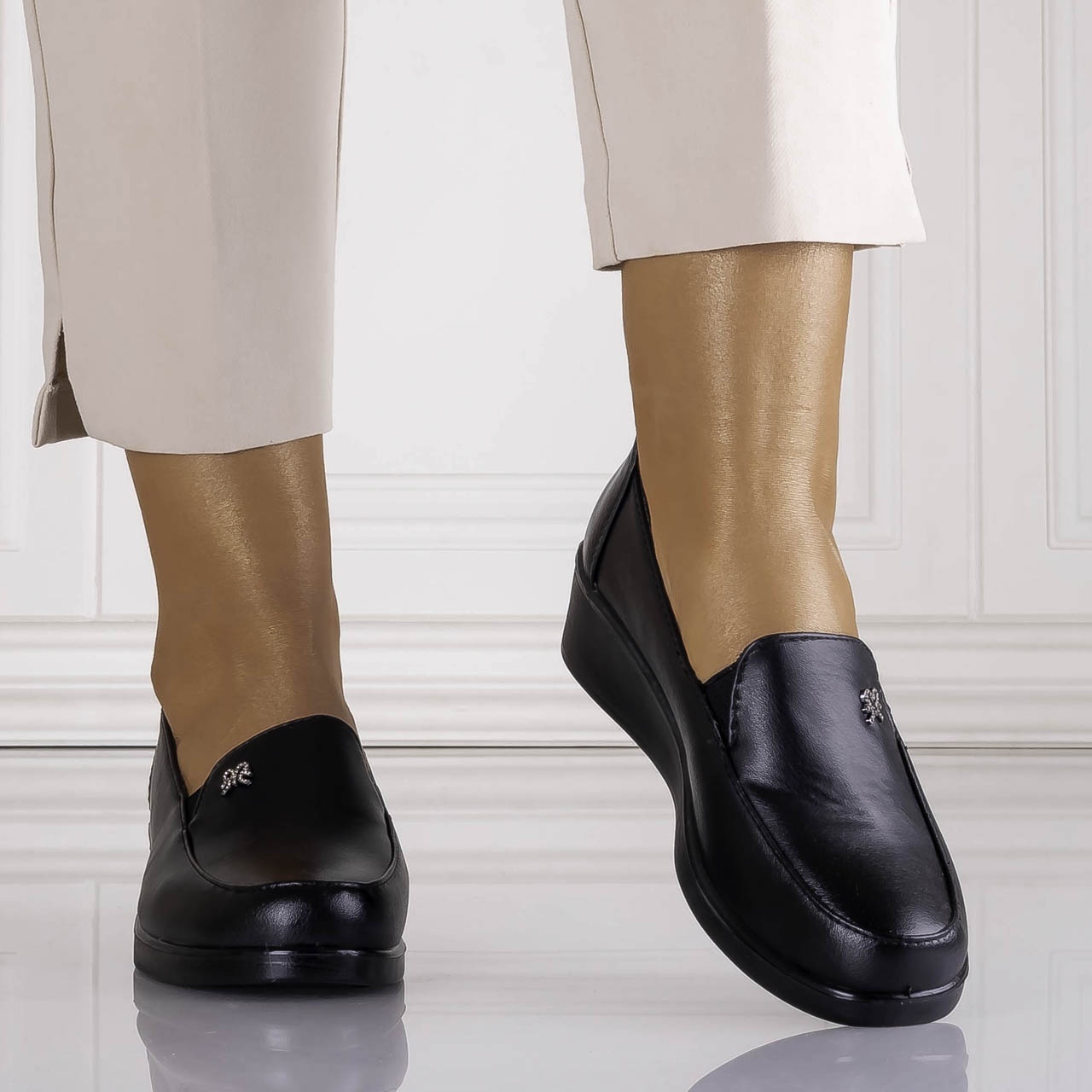 Pantofi dama casual Negri din piele ecologica Nivora