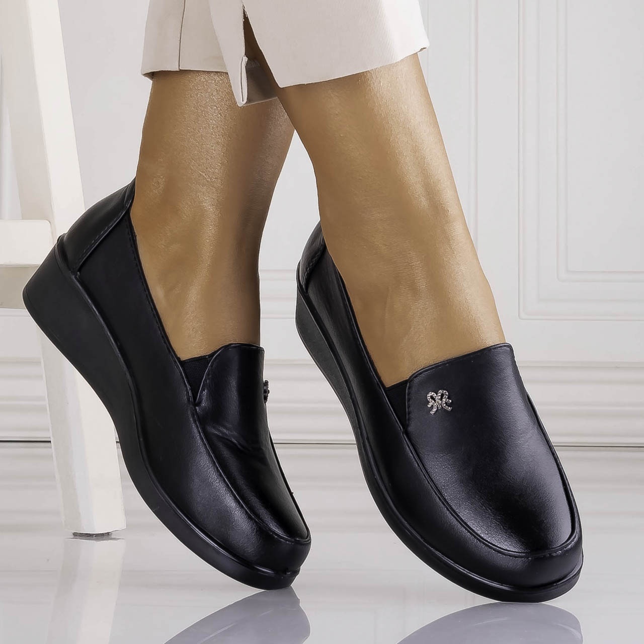 Pantofi dama Casual Negri din Piele Ecologica Kenia