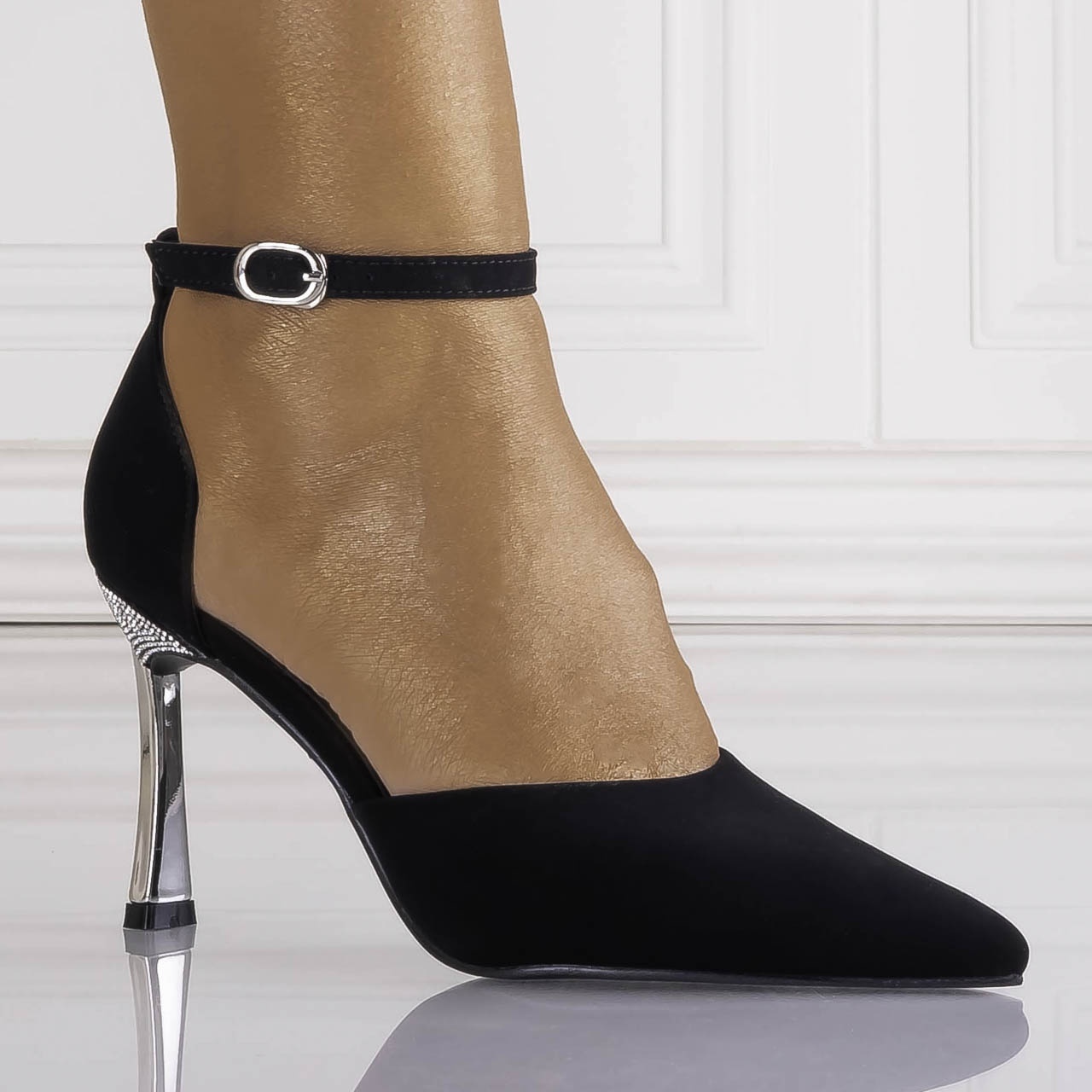 Pantofi dama Negri din Piele Ecologica Intoarsa Casilas