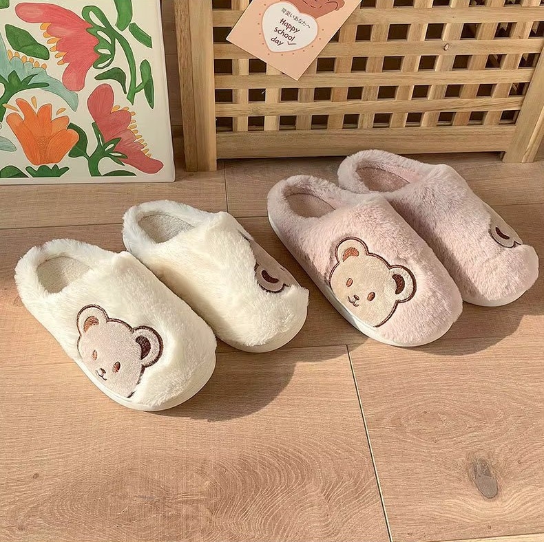 Papuci de casa pentru femei PC014, Fluffy Bears, Roz