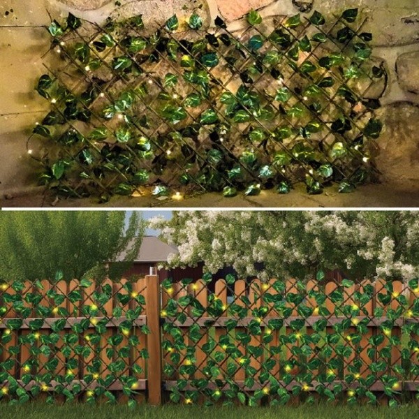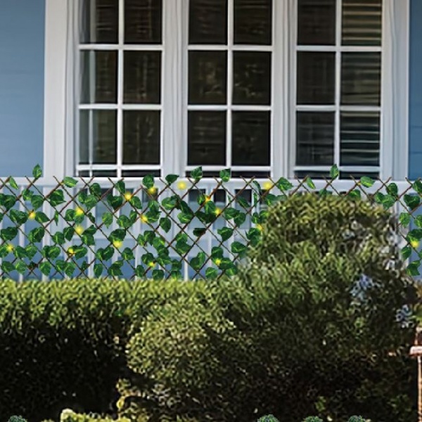Paravan cu frunze artificiale, pentru ingradire Dimensiune: 90 cm inaltime x 1.7 M lungime Gard artificial cu frunze verzi Paravan de ingradire din lemn cu frunze din plastic Poate fi pus la balcon sau in gradina pentru a crea un perete natural Culoare: Verde inchis Material: Plastic 90 cm inaltime x 1.7 M lungime Pergola Solara Din Lemn cu Frunze si 50 Beculete Alb/Cald, 170x90 cm - Paravan din lemn cu frunze din panza verde, impletite pe toata suprafata si instalatie solara cu 50 de becuri LED cu lumina alba calda. Dispune de 8 moduri diferite: combinatie, valuri, secvential, stralucire lenta, alternanta secventiala/apa curgatoare, estompare lenta/secventiala, stralucire alternanta si constanta. Este potrivit pentru utilizare in interior sau in exterior. Puteti decora curtea, gardul, il puteti fixa pe tavan sau pe podea. Puneti panoul solar intr-un loc cu acces la lumina solara. Este perfect pentru a decora casa, magazinul, biroul, restaurantele sau hotelul! Dimensiuni ambalaj 120x22 cm Lungime x latime 170x90 cm Culoare Becuri Alb Cald Culoare Cablu Verde Distanta de la primul bec 200 cm